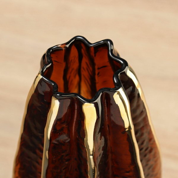 Керамическая ваза декоративная настольная «Дерк» полосы, для цветов, сухоцветов, d-9.5 см, h-24.5 см, золотисто-чёрный