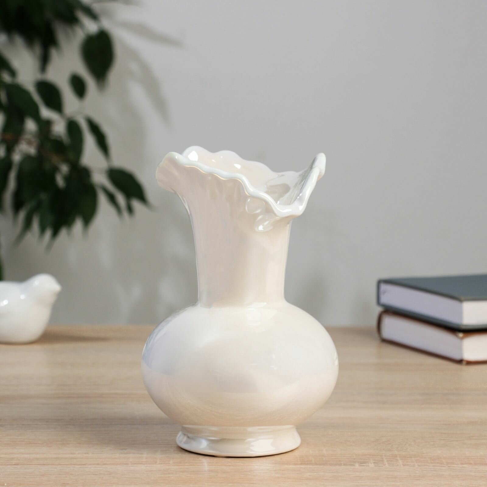 Ваза "Жаклин", h=22 см, керамика, белая, вид вазы: настольная