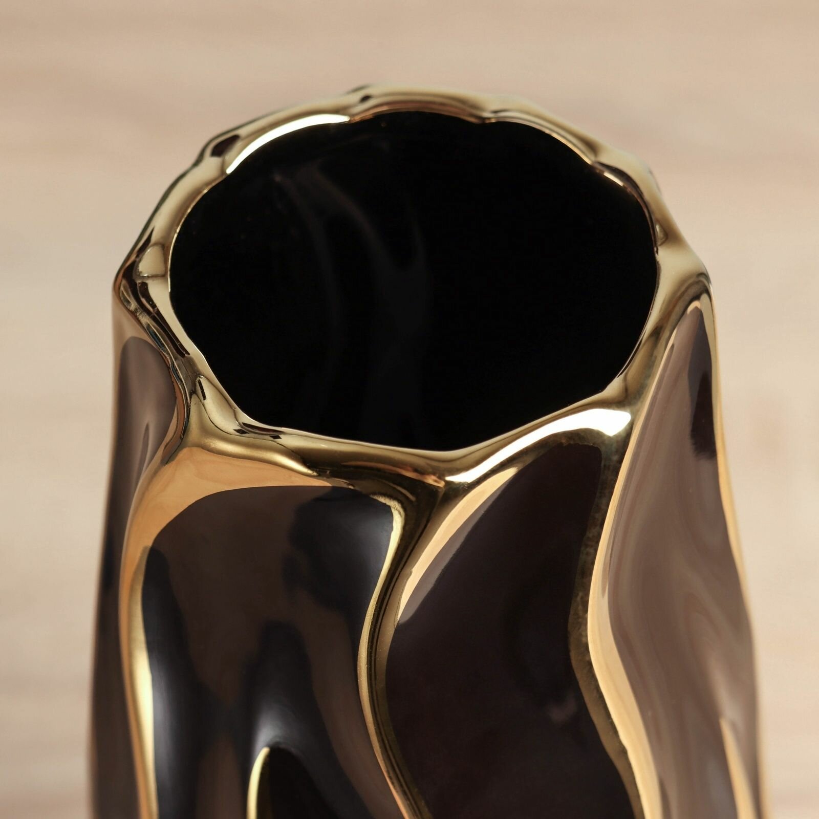 Ваза "Альба", d=6.5 см, 11x20 см, керамика, чёрно-золотая, оформление: другие