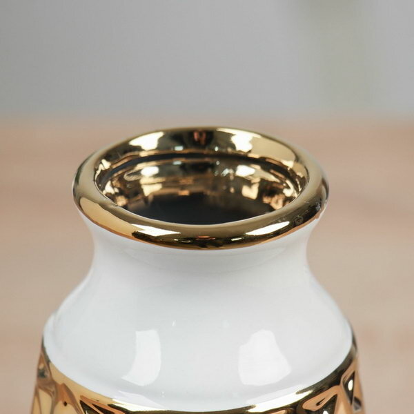 Купить Ваза "Калеб", 20x9.5 см, керамика, бело-золотая, оформление: декор золотистый