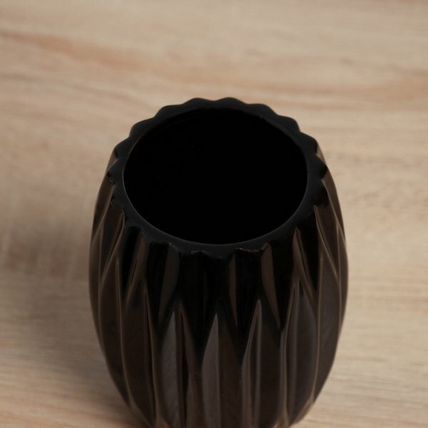 Купить Ваза "Тьяго", грани, d=7 см, 14x9.5 см, керамика, чёрная, цвет: чёрный