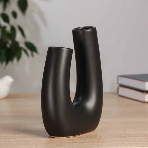 Керамическая ваза для цветов, сухоцветов Лиам , настольная, d-6 см, 20 10 см, чёрный