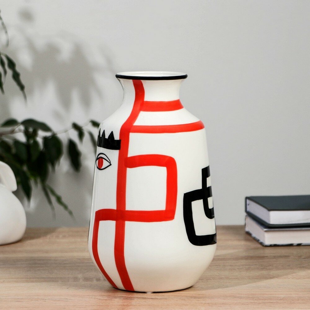 Ваза "Изящный профиль", h=28 см, керамика, белый, оформление: абстракции