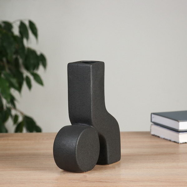 Керамическая ваза декоративная настольная Грэйем , для цветов, сухоцветов, d-7 см, 17.5 10 см, чёрный
