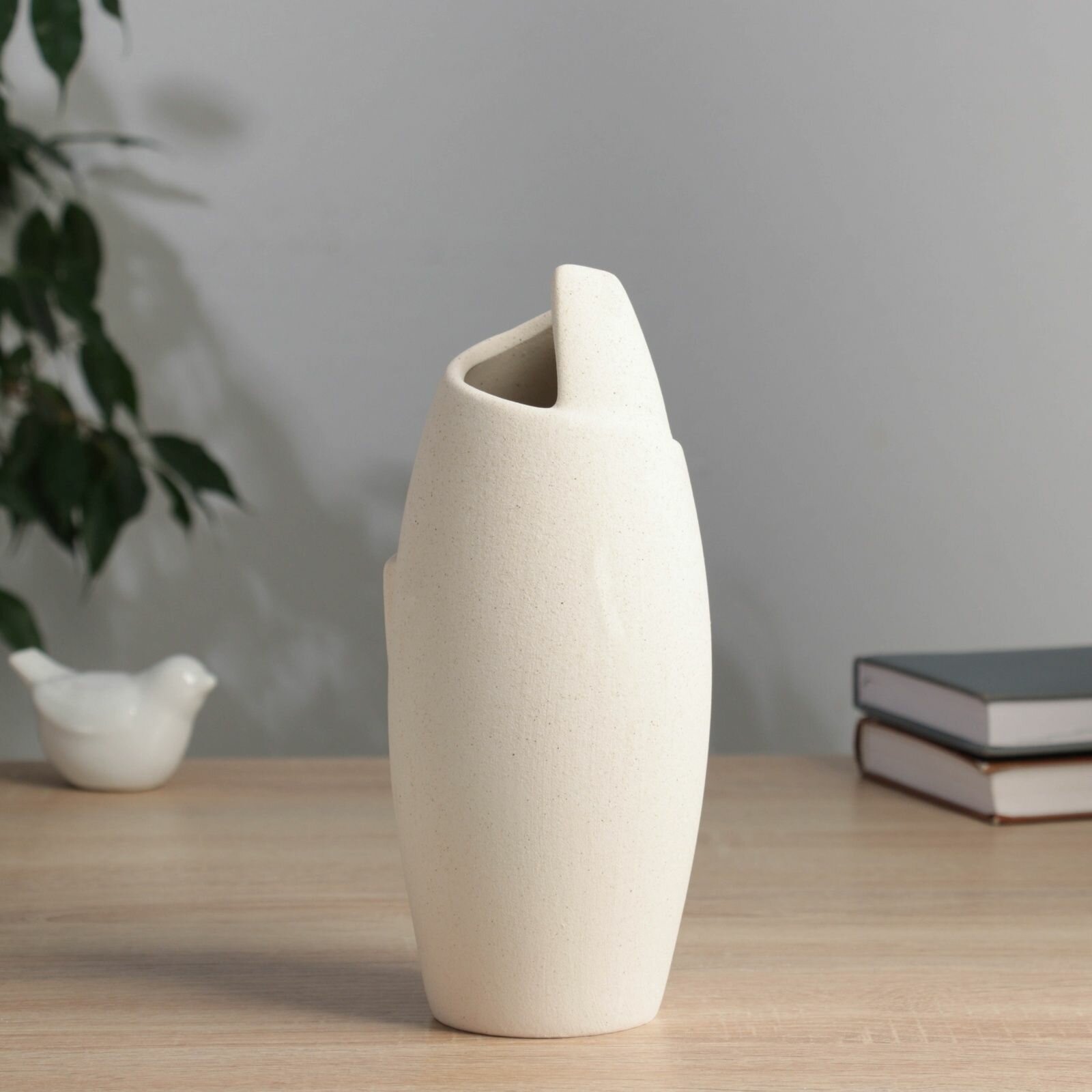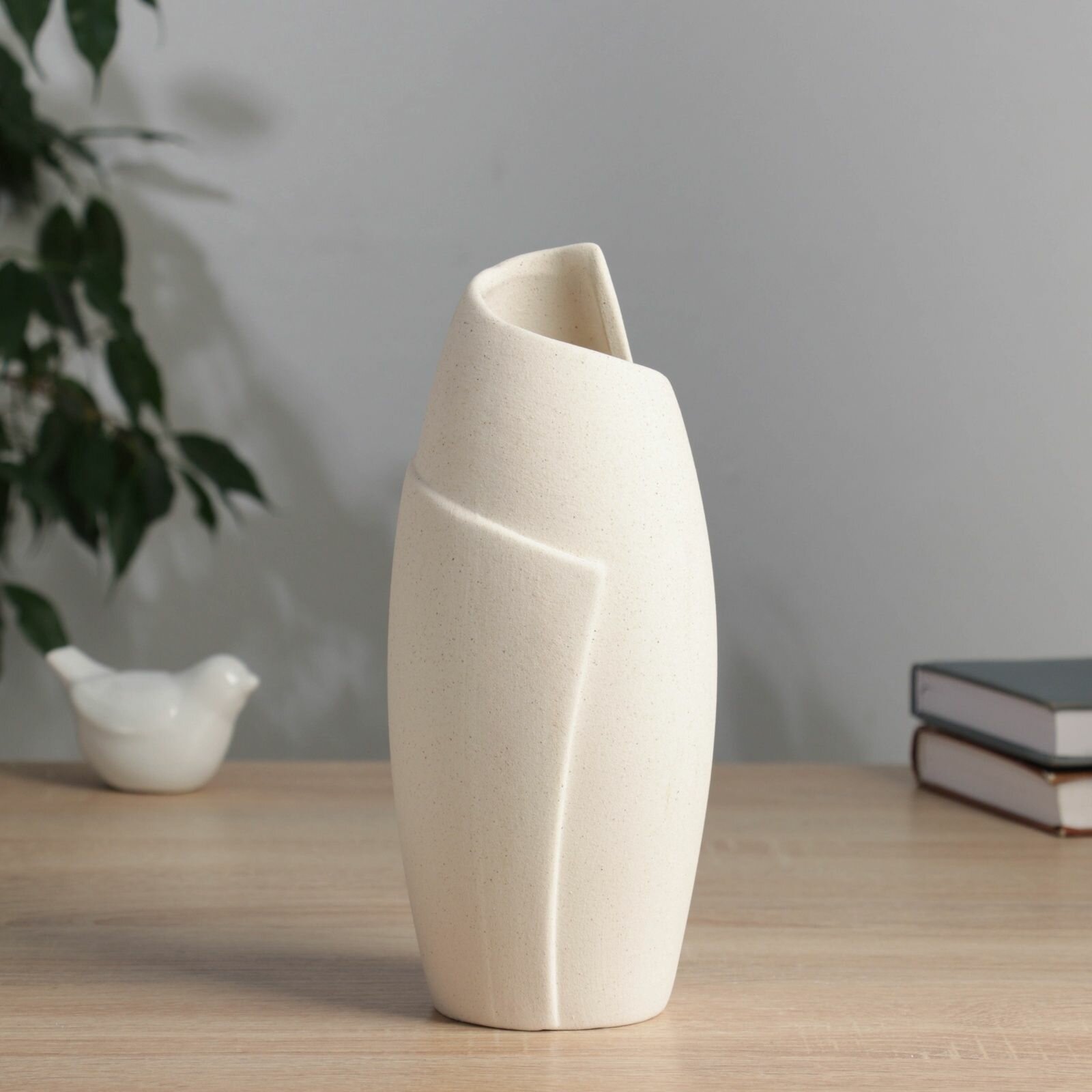 Керамическая ваза декоративная настольная Оскар , для цветов, сухоцветов, d-8 см, 20 10.5 см, белый