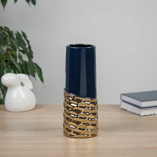Купить Ваза "Космин", труба, d=7 см, 24x9.5 см, керамика, сине-золотая