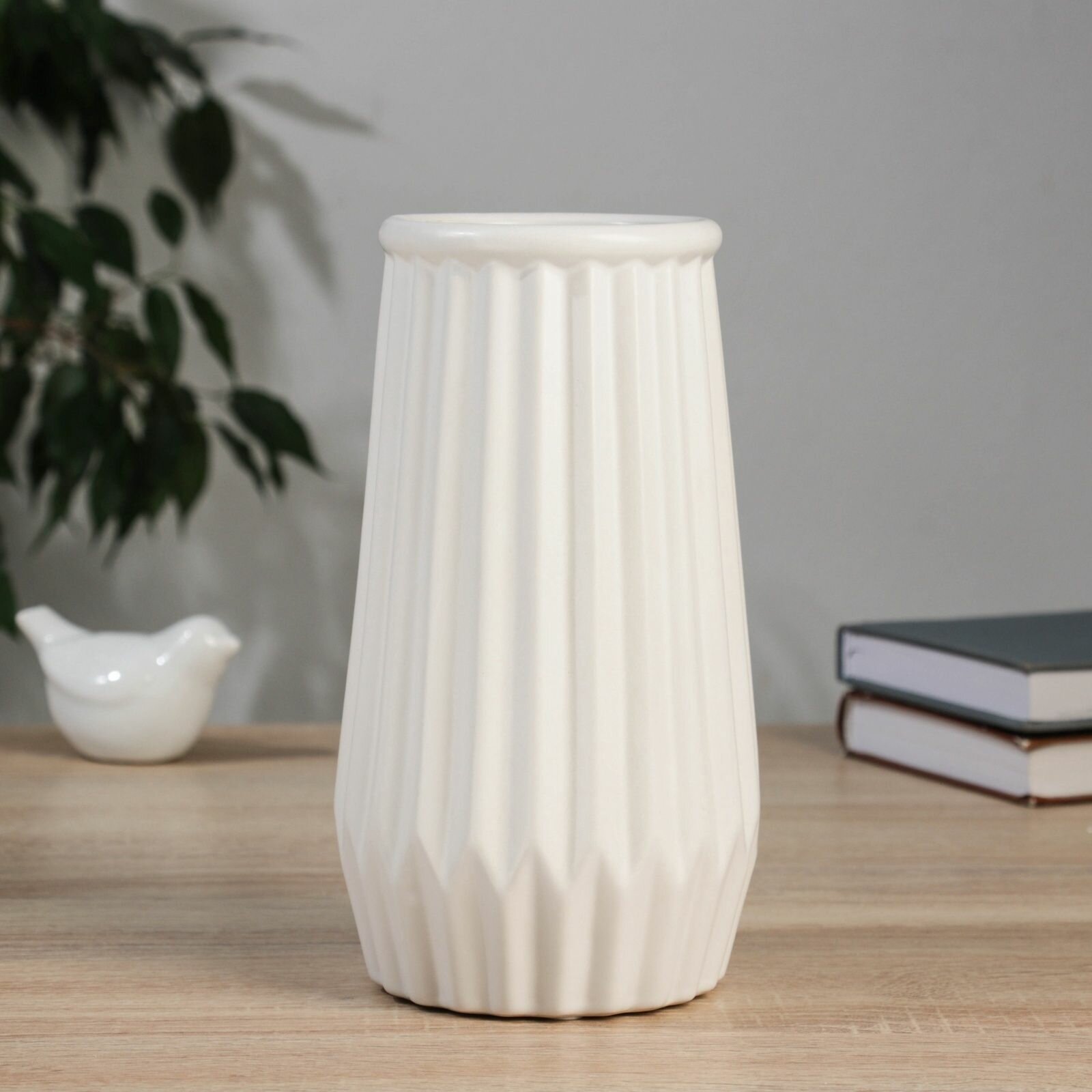 Керамическая ваза для цветов, сухоцветов Лиам элит , настольная, d-6 см, 20 10 см, белый