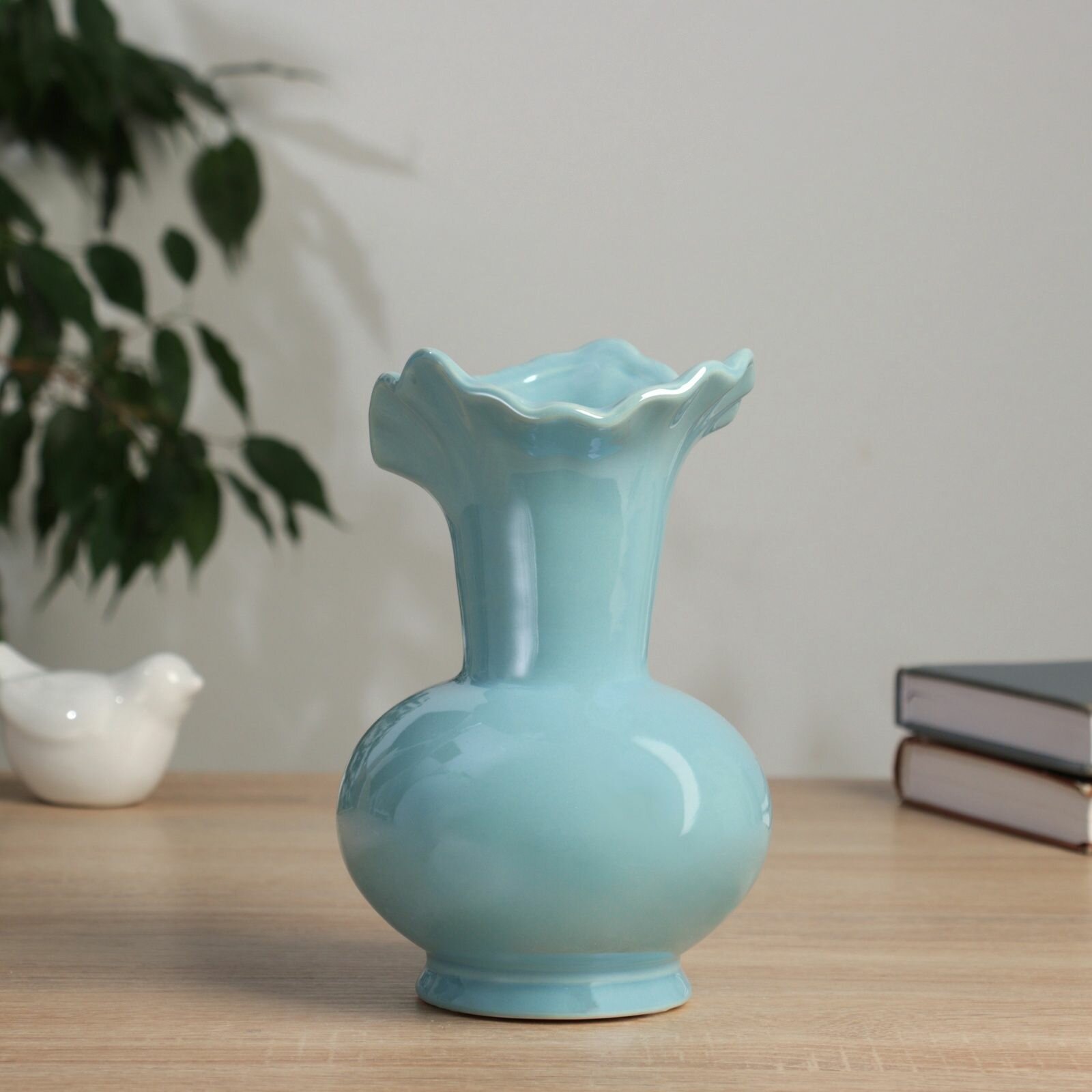 Купить Керамическая ваза для цветов, сухоцветов Изекил , настольная, d-10 см, h-17 см, голубой
