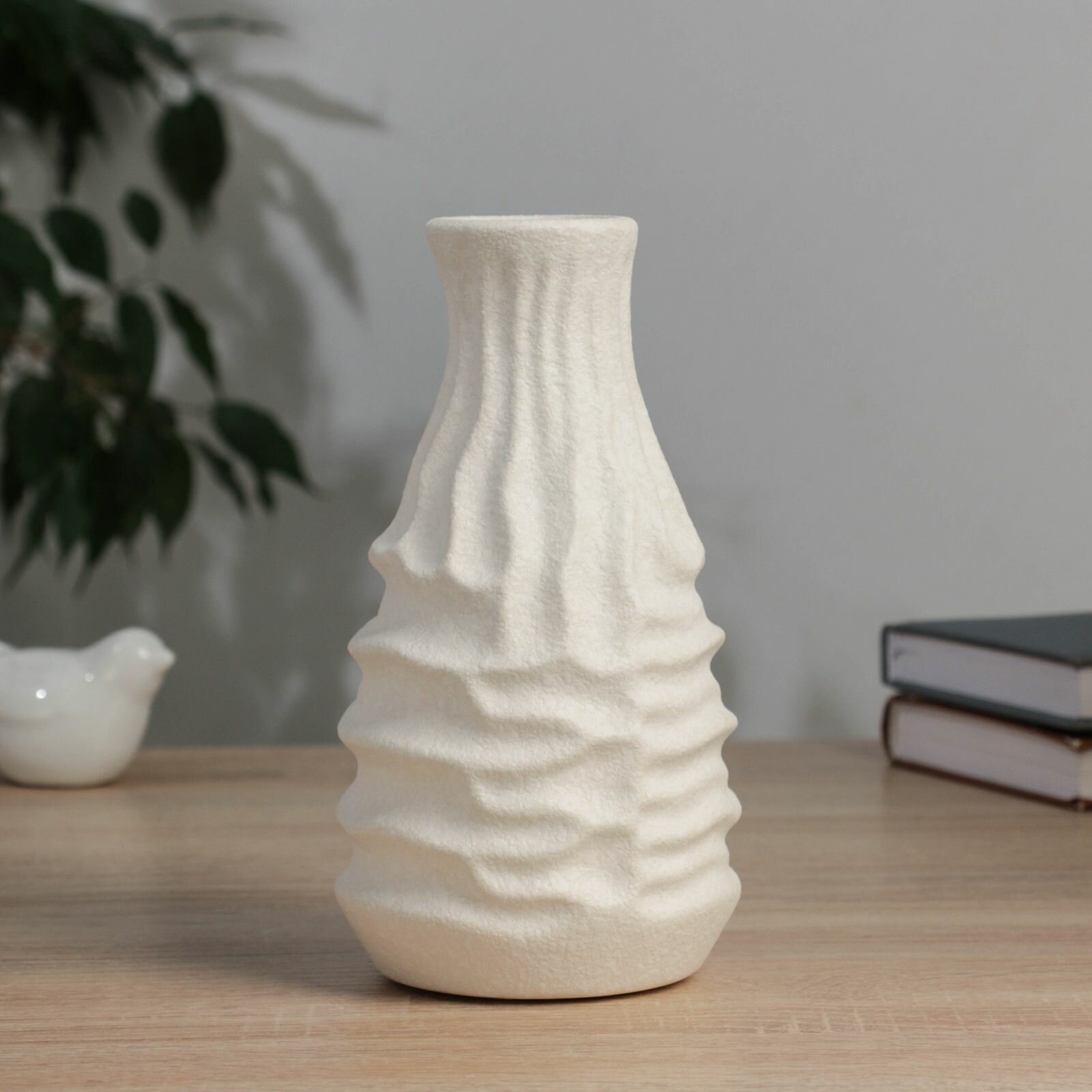 Ваза "Пелагея", h=19 см, керамика, белая, цвет: белый, оформление: рельефные
