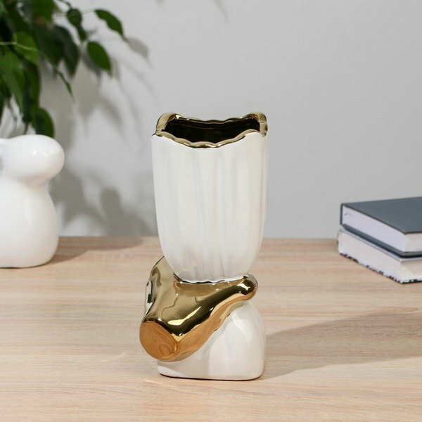 Ваза "Калеб", 20x9.5 см, керамика, бело-золотая, оформление: декор золотистый
