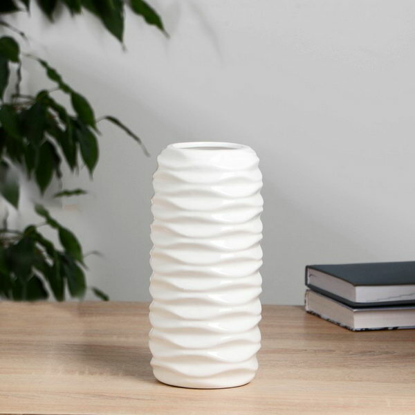 Ваза "Пелагея", h=19 см, керамика, белая, цвет: белый, оформление: рельефные