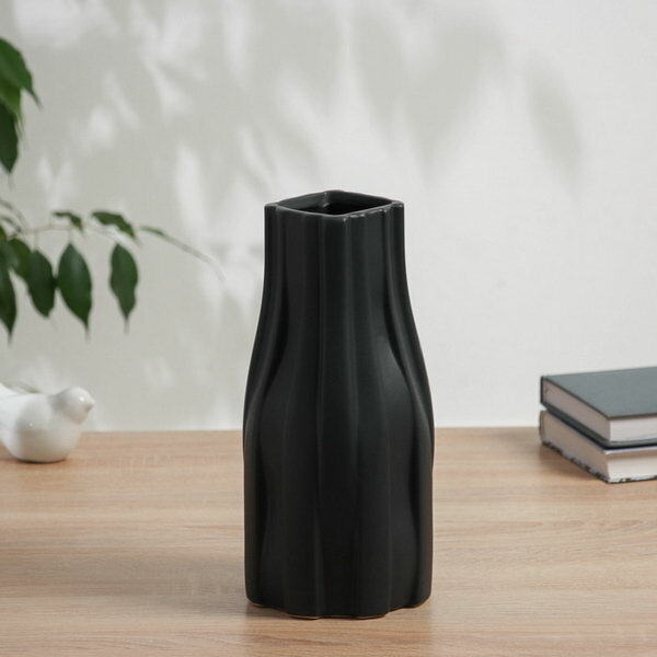 Керамическая ваза декоративная настольная «Кейдн», для цветов, сухоцветов, 23.5 см, чёрный