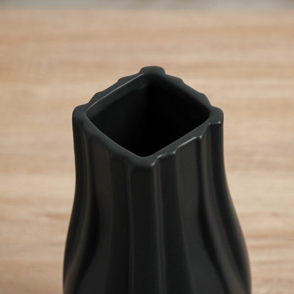 Ваза "Тьяго", грани, d=7 см, 14x9.5 см, керамика, чёрная, цвет: чёрный