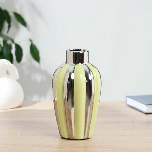 Керамическая ваза декоративная настольная Шейн , для цветов, сухоцветов, d отв.- 3 см, 19 15 см, серебро