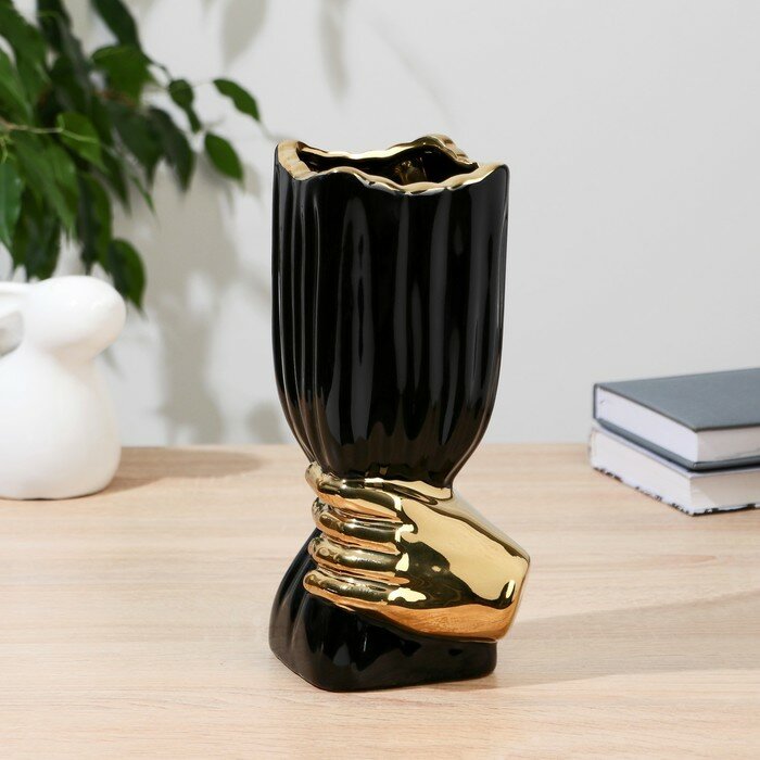 СохранитьКерамическая ваза декоративная настольная «Дерк» полосы, для цветов, сухоцветов, d-9.5 см, h-24.5 см, золотисто-чёрный интересное: