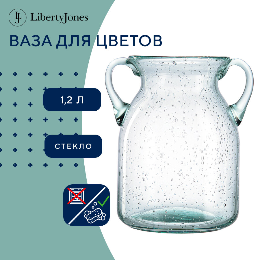 Ваза для цветов и сухоцветов Flowi 25 см стеклянная настольная с ручками 3.1 л Liberty Jones LJ0000283
