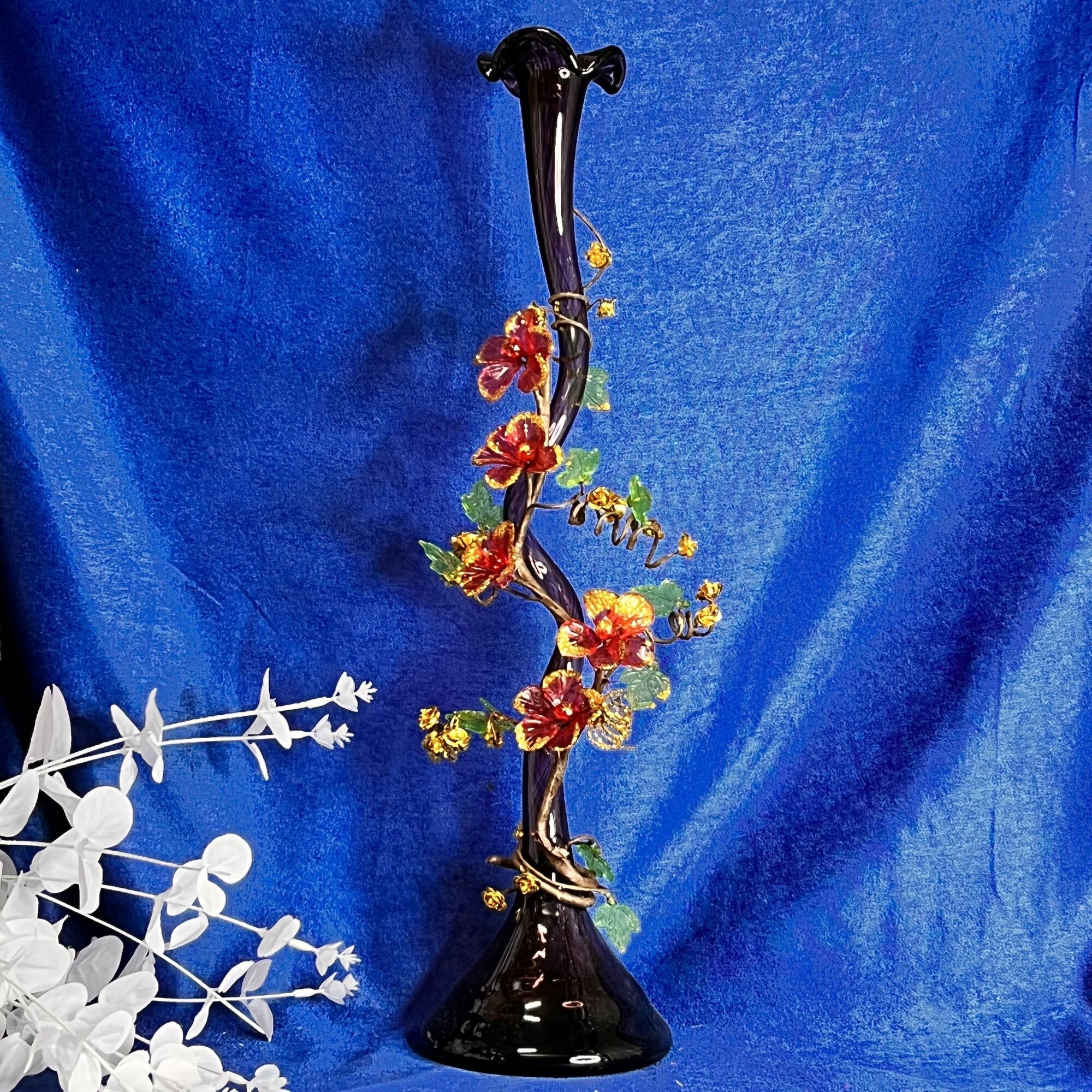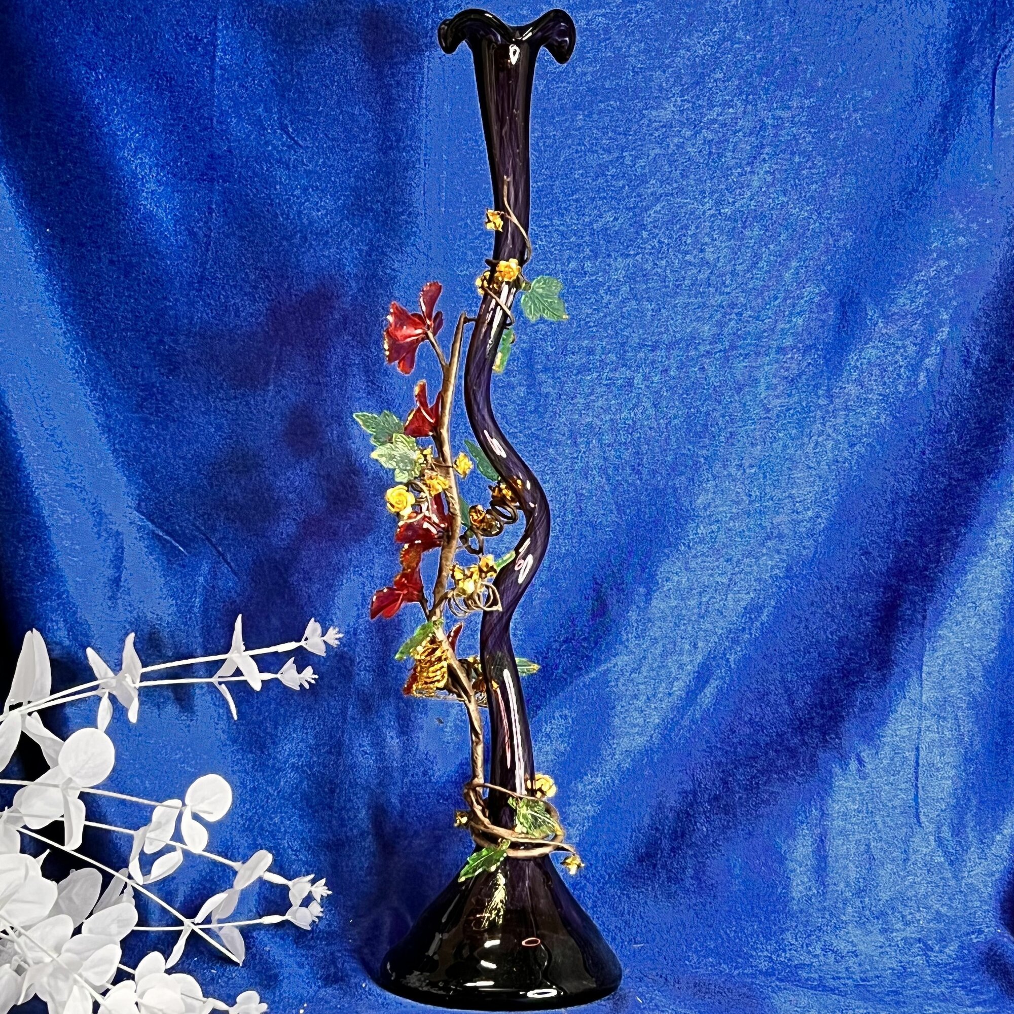 Купить Ваза из цветного стекла витая Марганец с стеклярусом