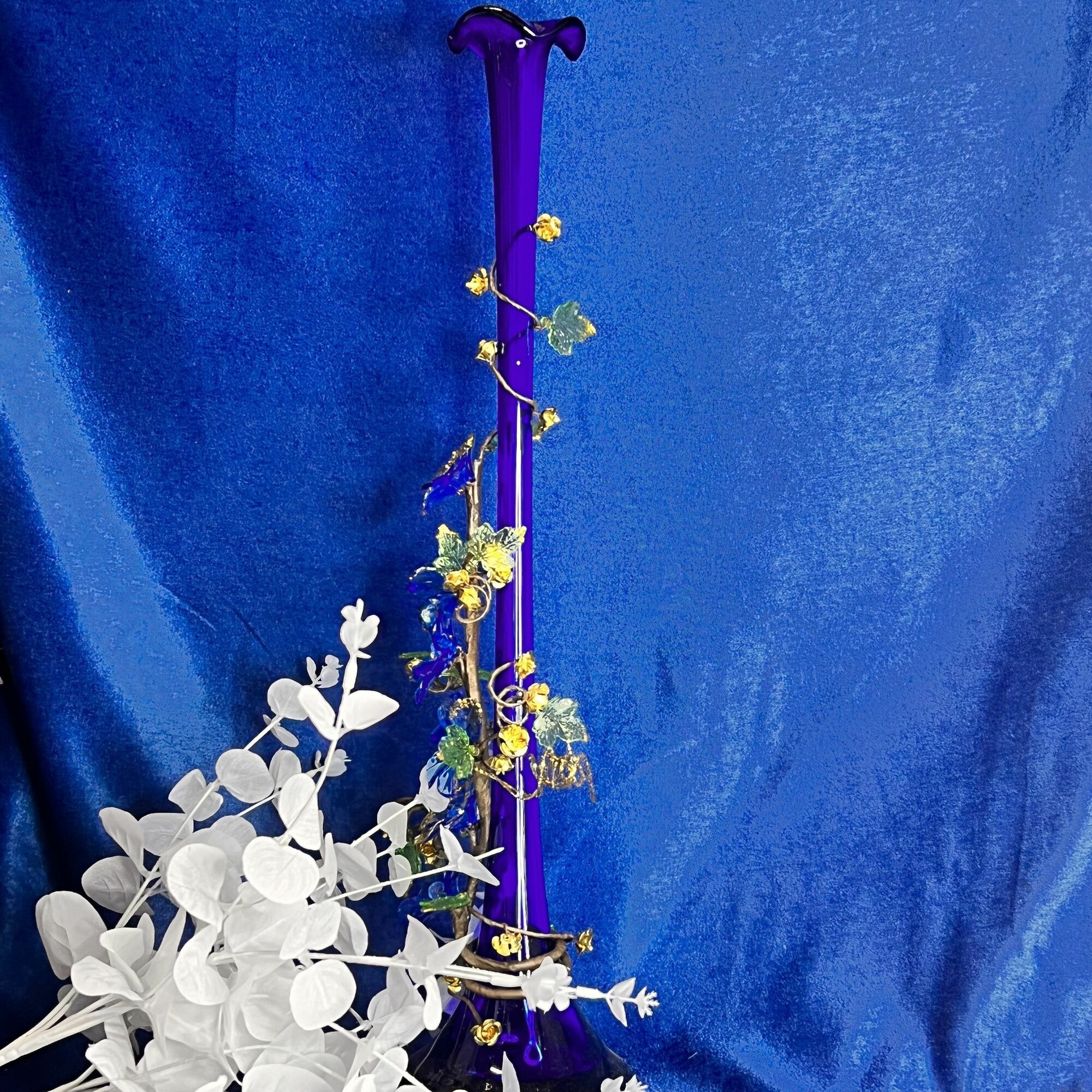 Ваза из цветного стекла витая Синяя с стеклярусом
