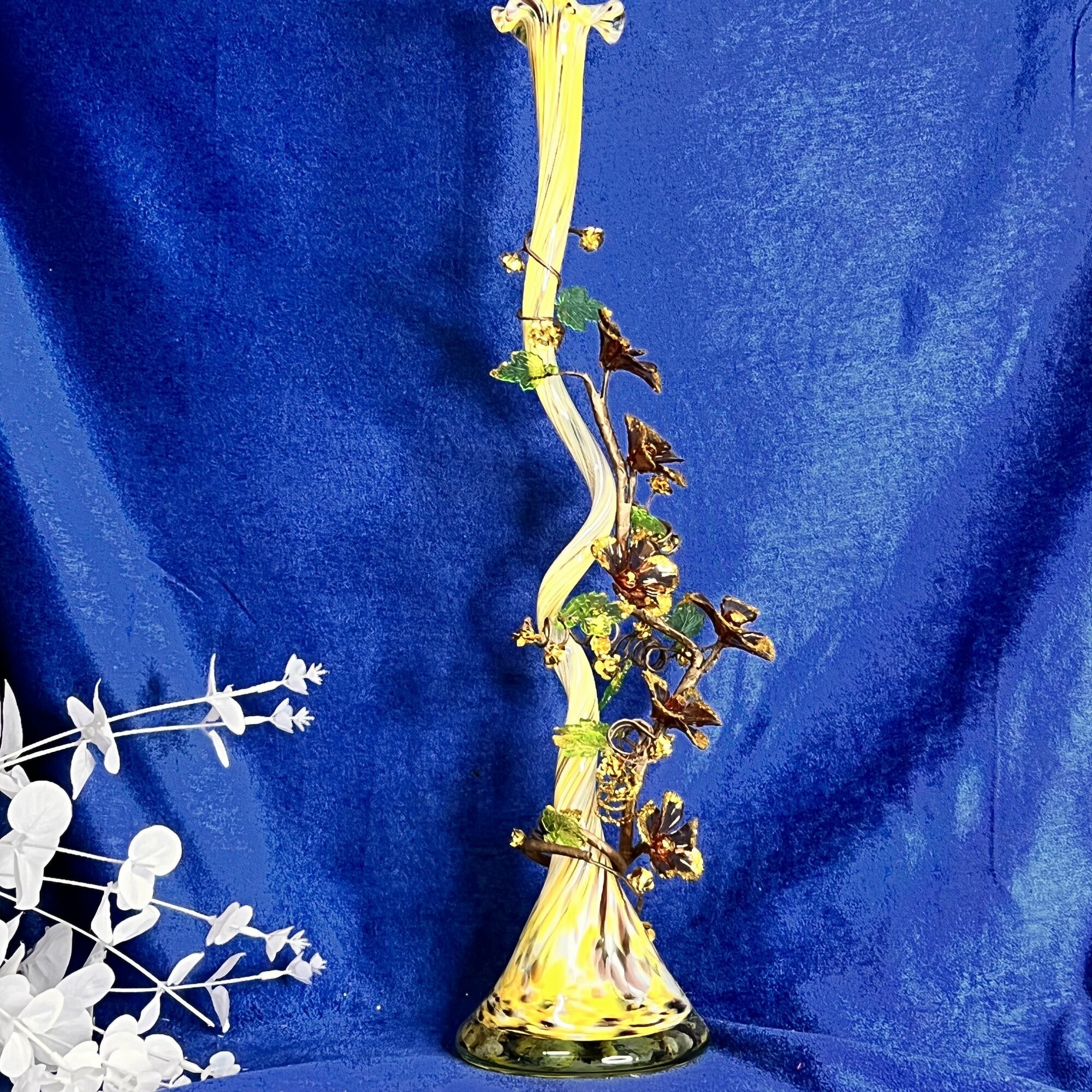Ваза из цветного стекла витая Желтая с стеклярусом
