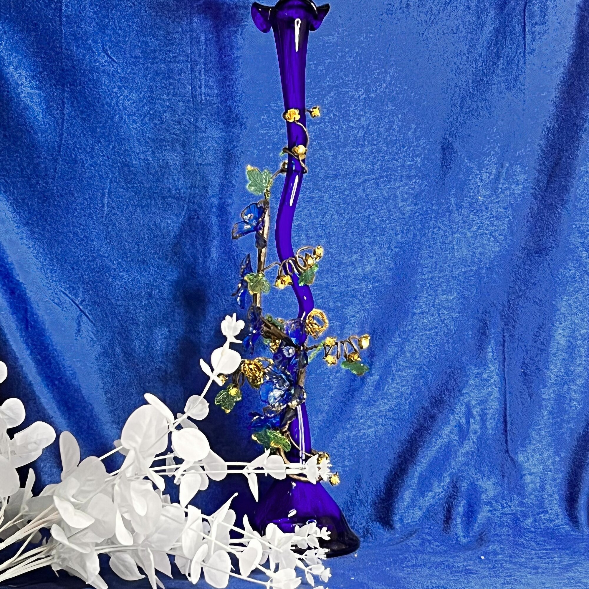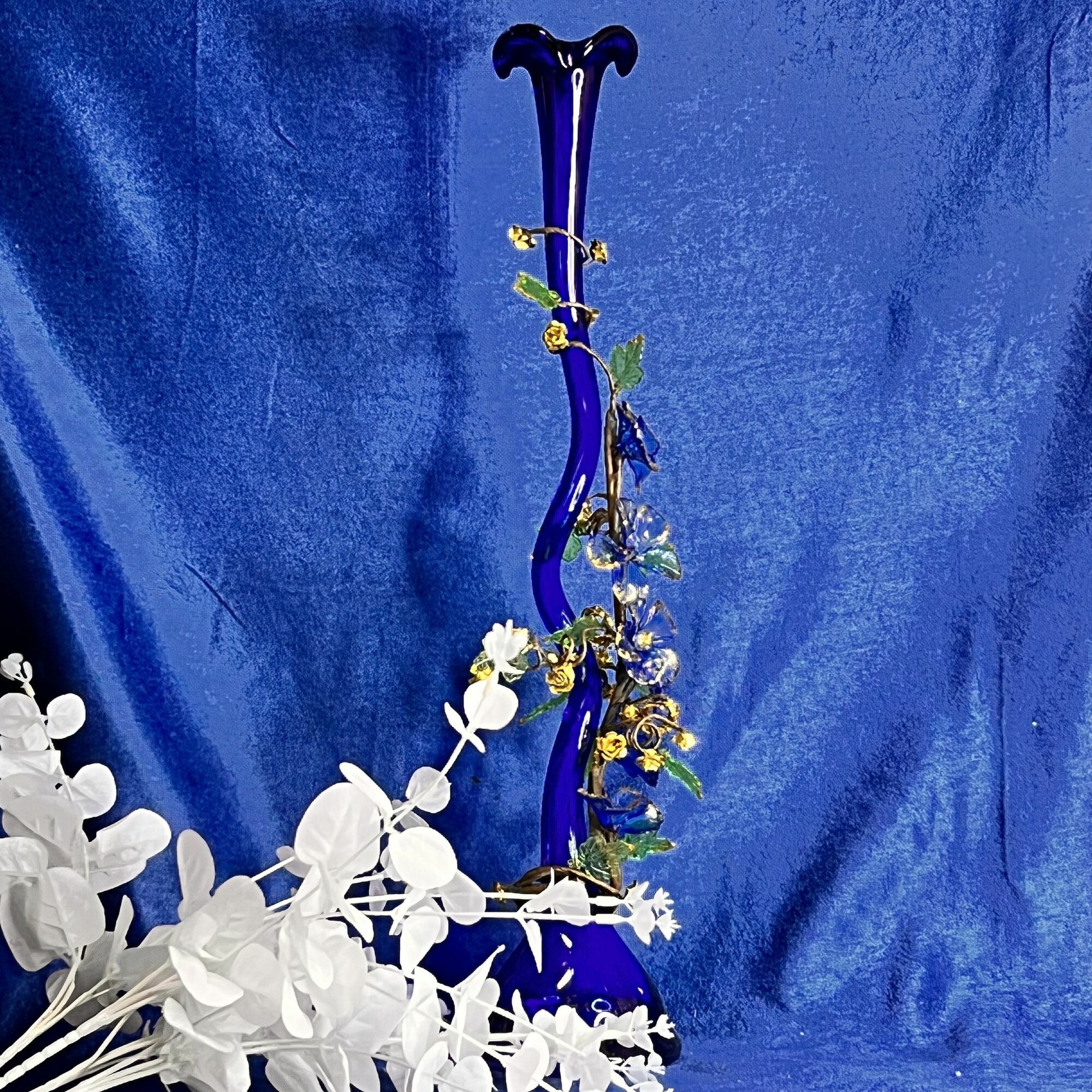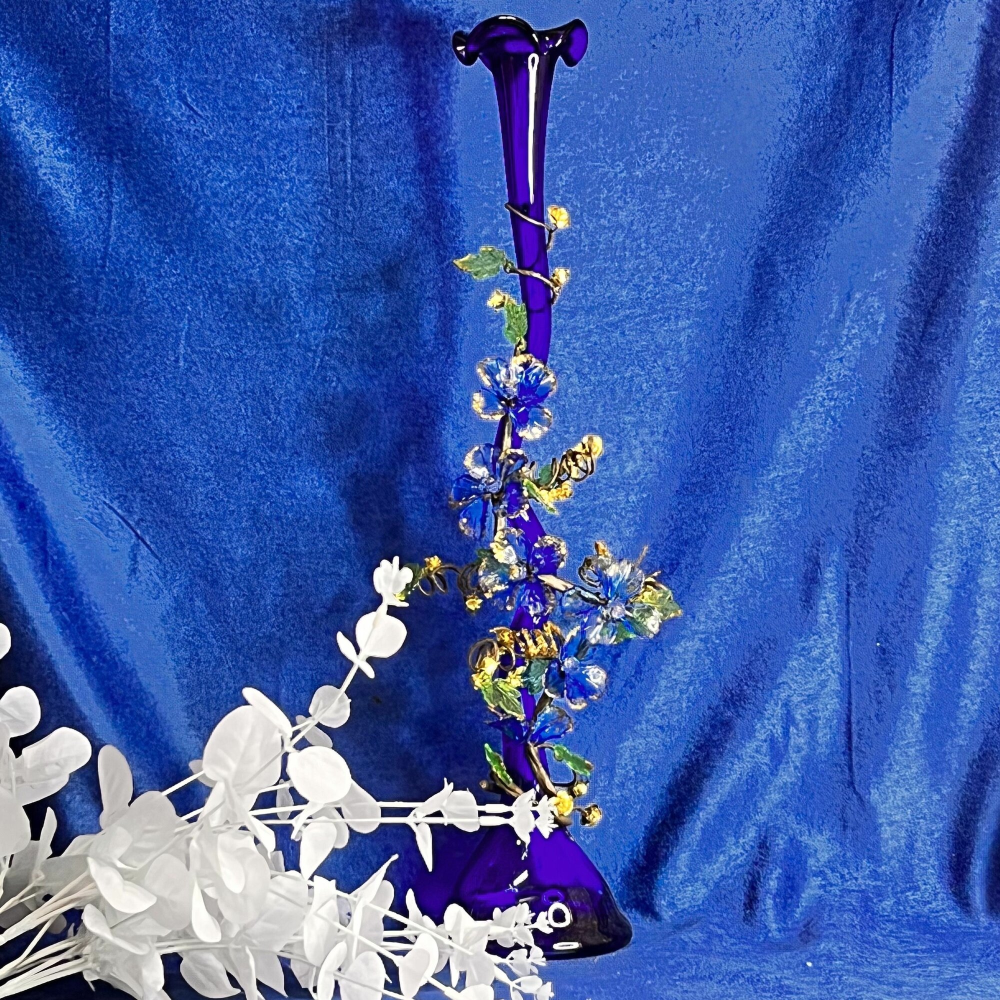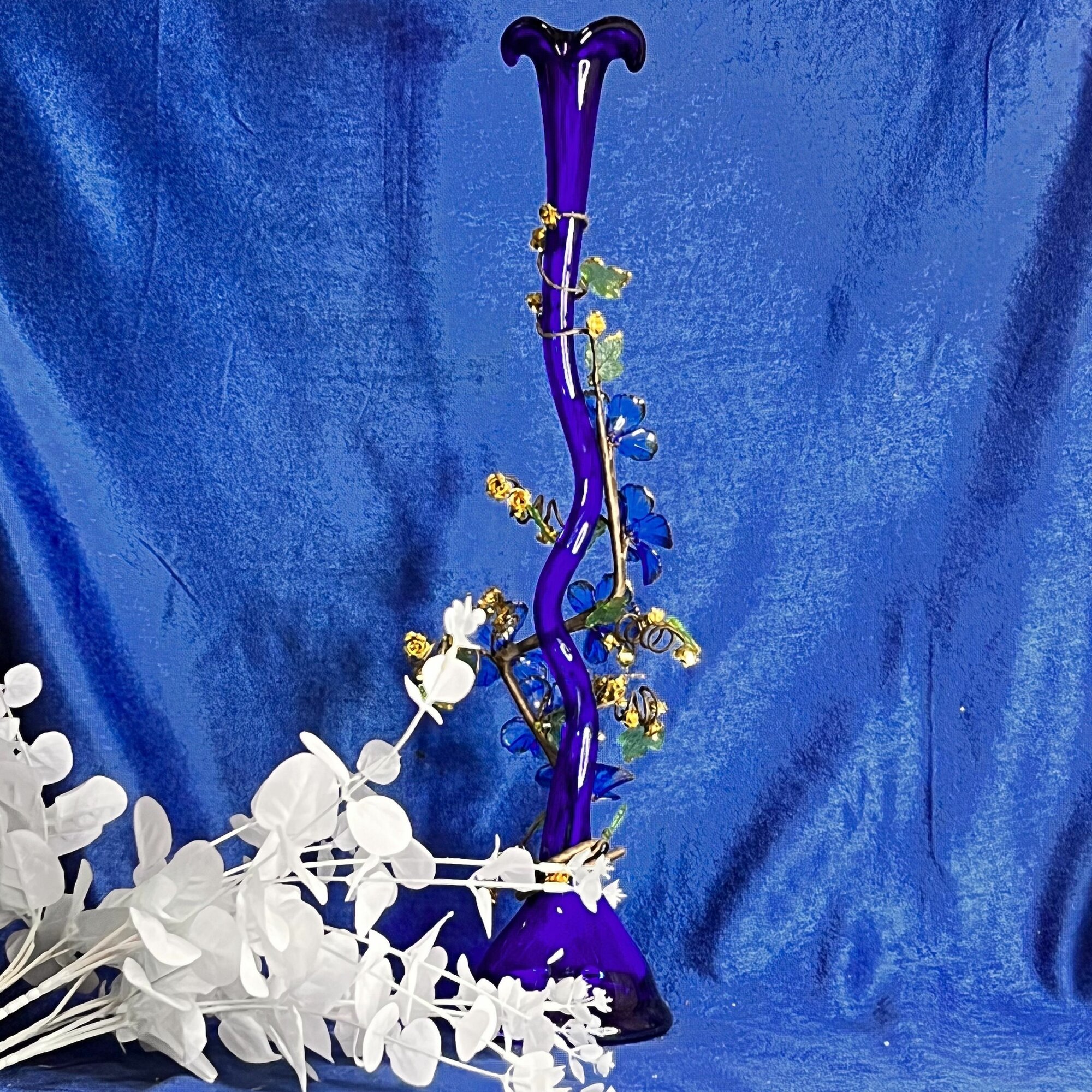 Купить Ваза из цветного стекла витая Синяя с стеклярусом