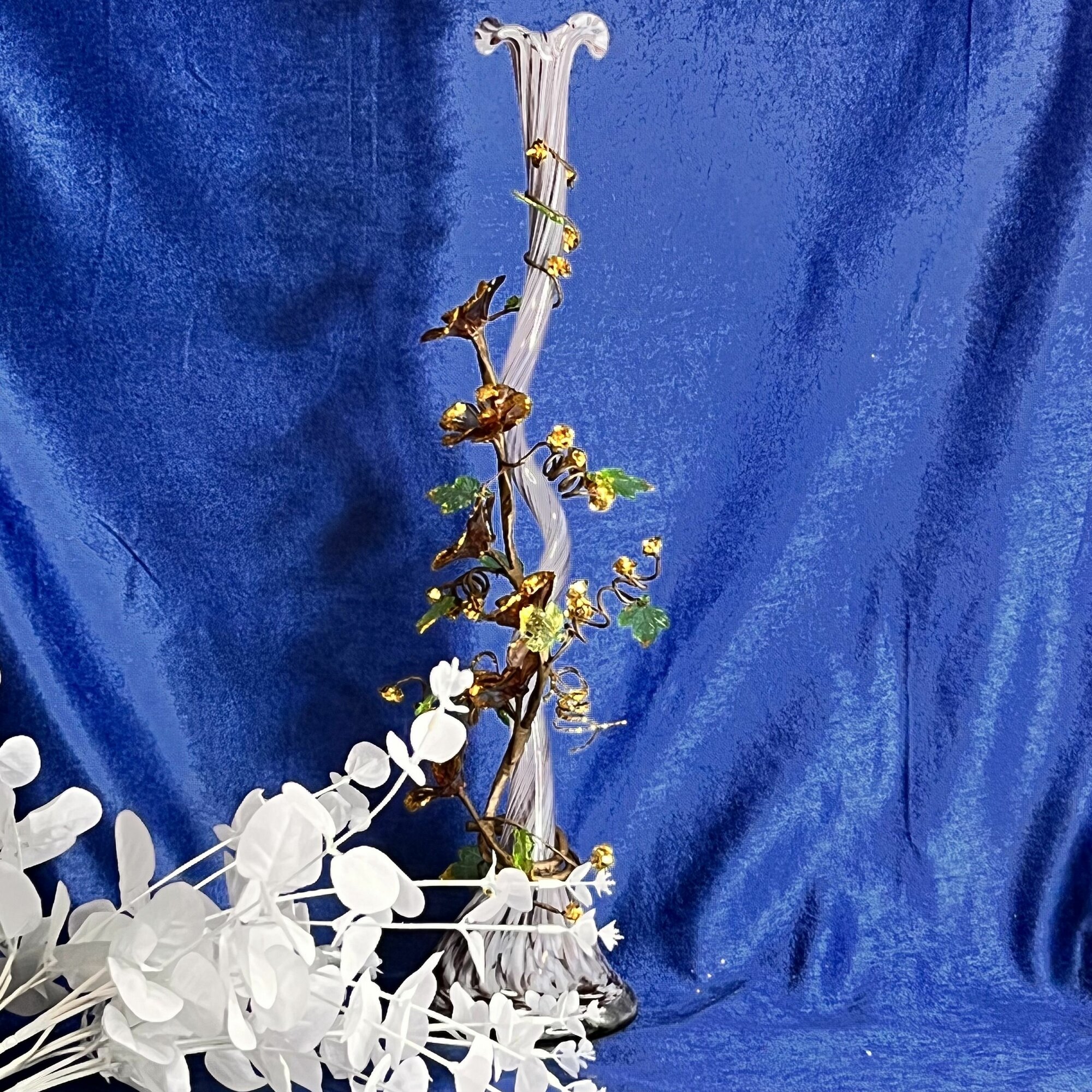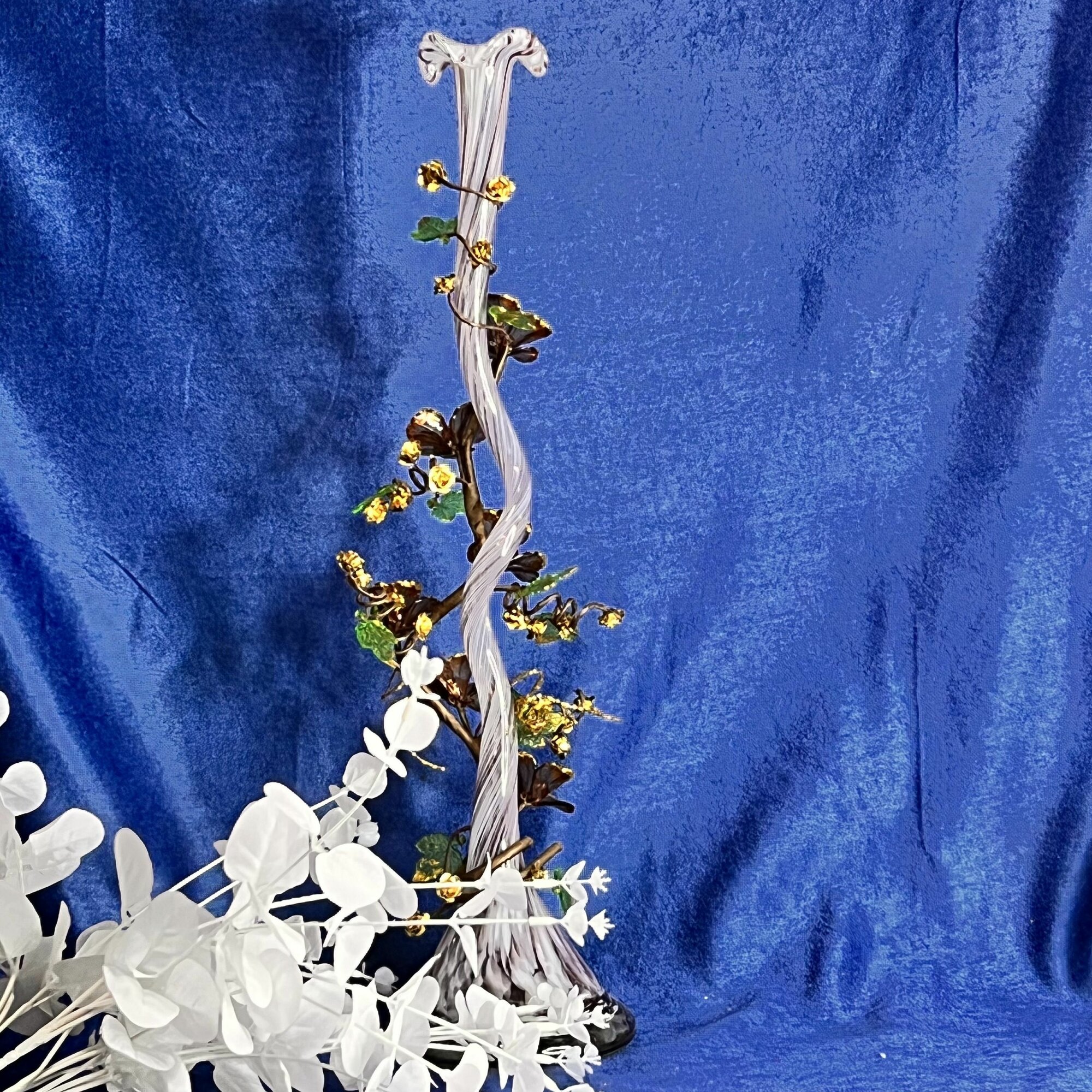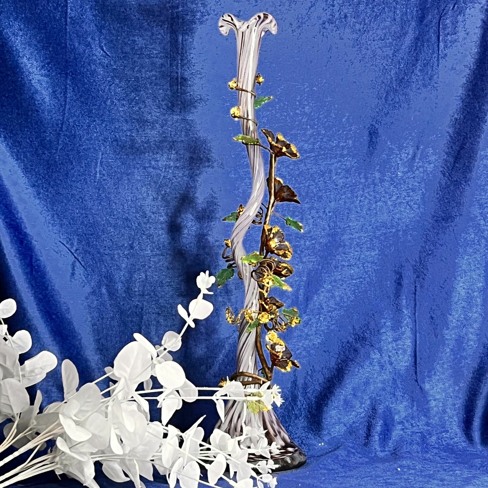 Ваза из цветного стекла витая ЖОК с стеклярусом