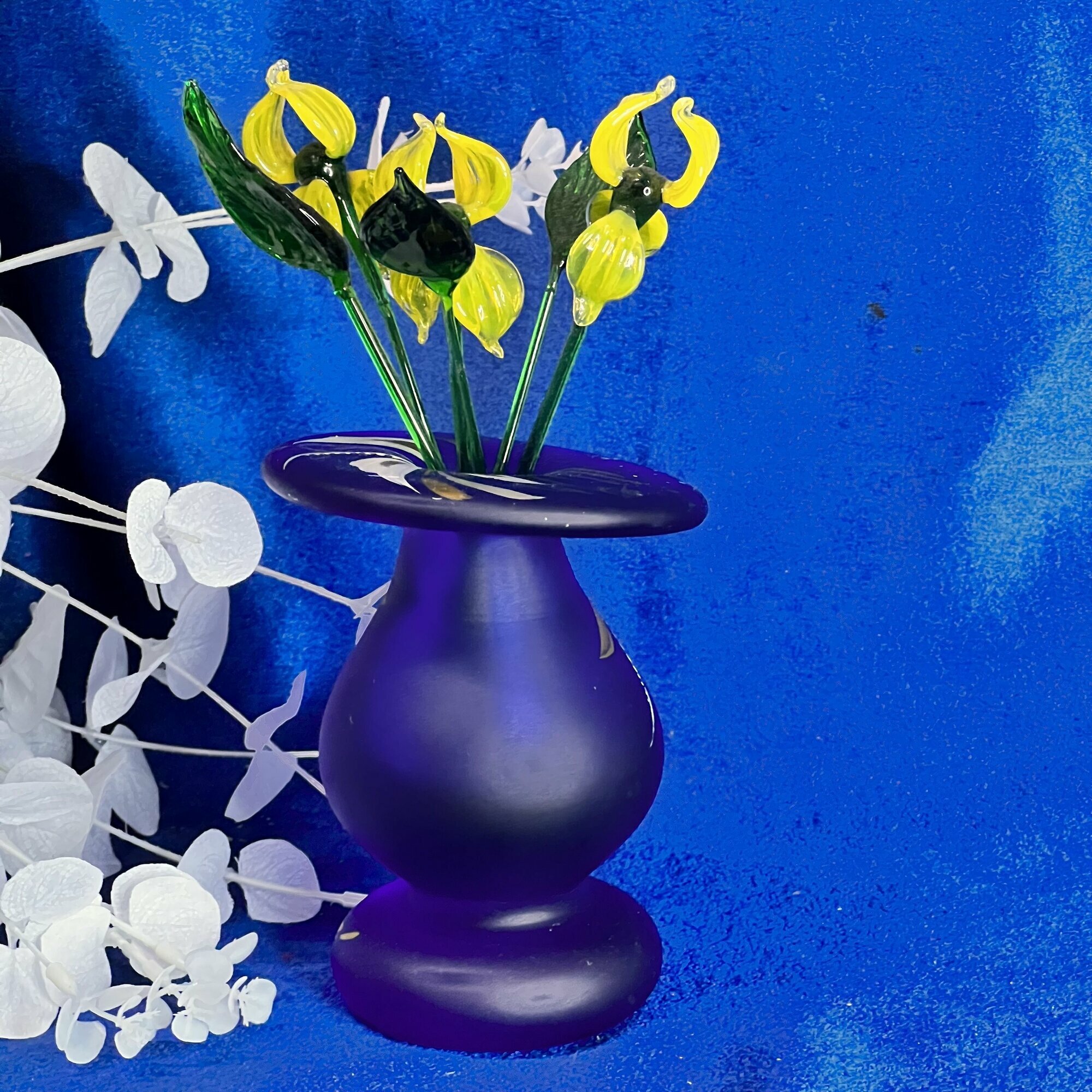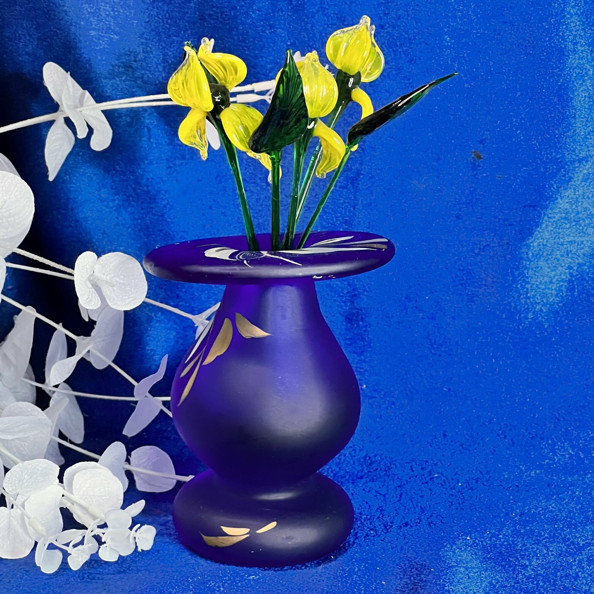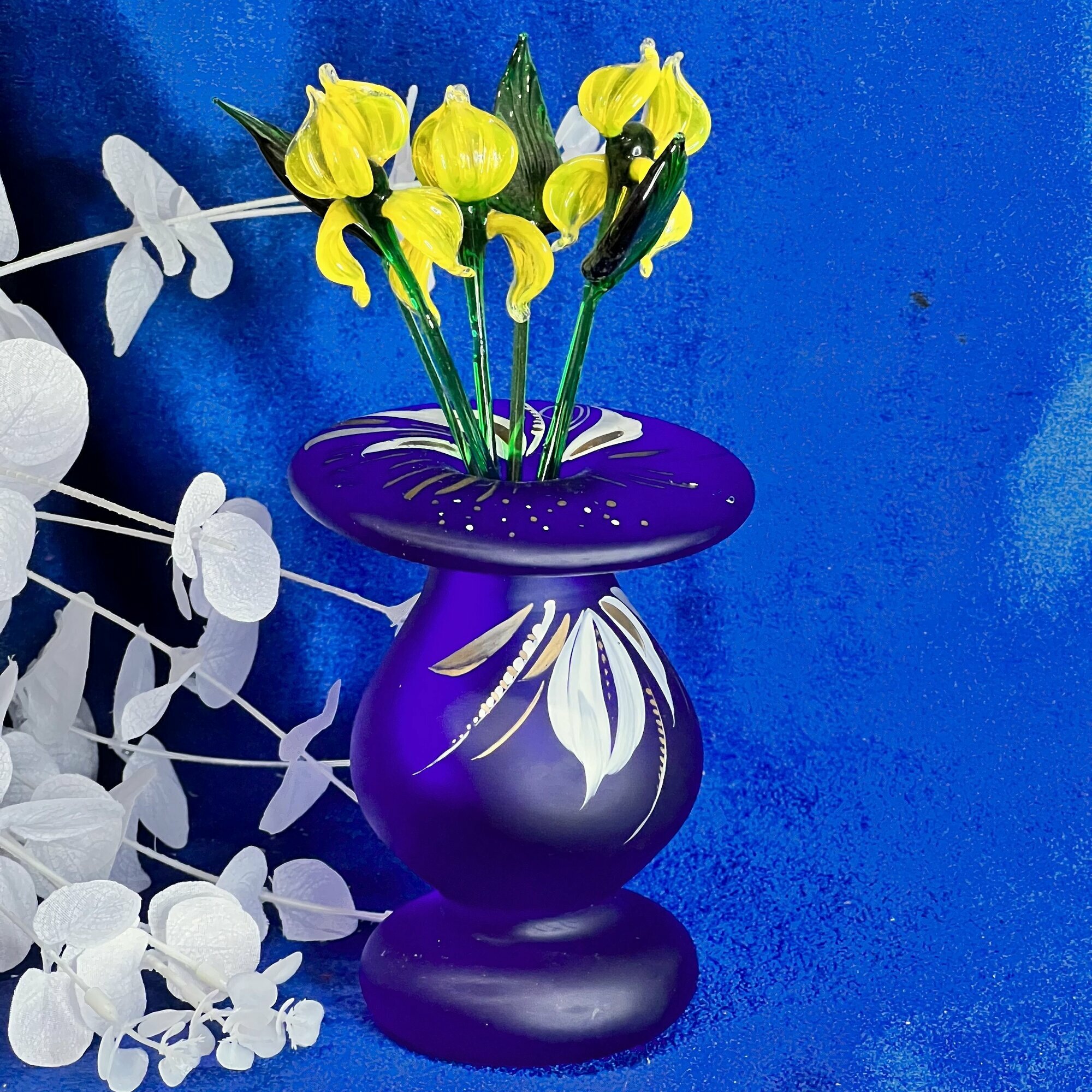 Купить Ваза из цветного стекла 22 см Синяя Матовая с ирисами