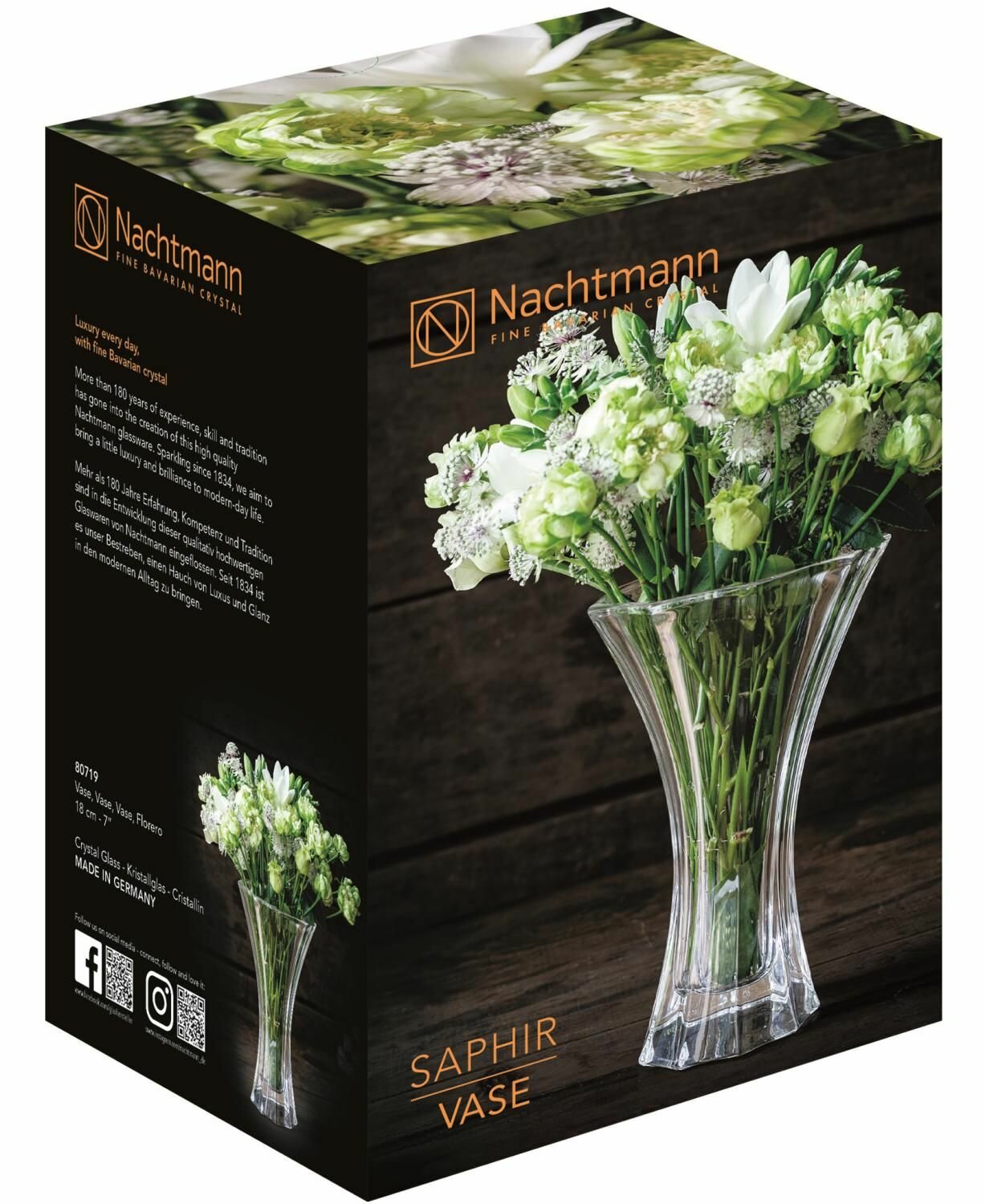 Ваза SAPHIR, высота: 24 см, материал: бессвинцовый хрусталь, 80501, NACHTMANN