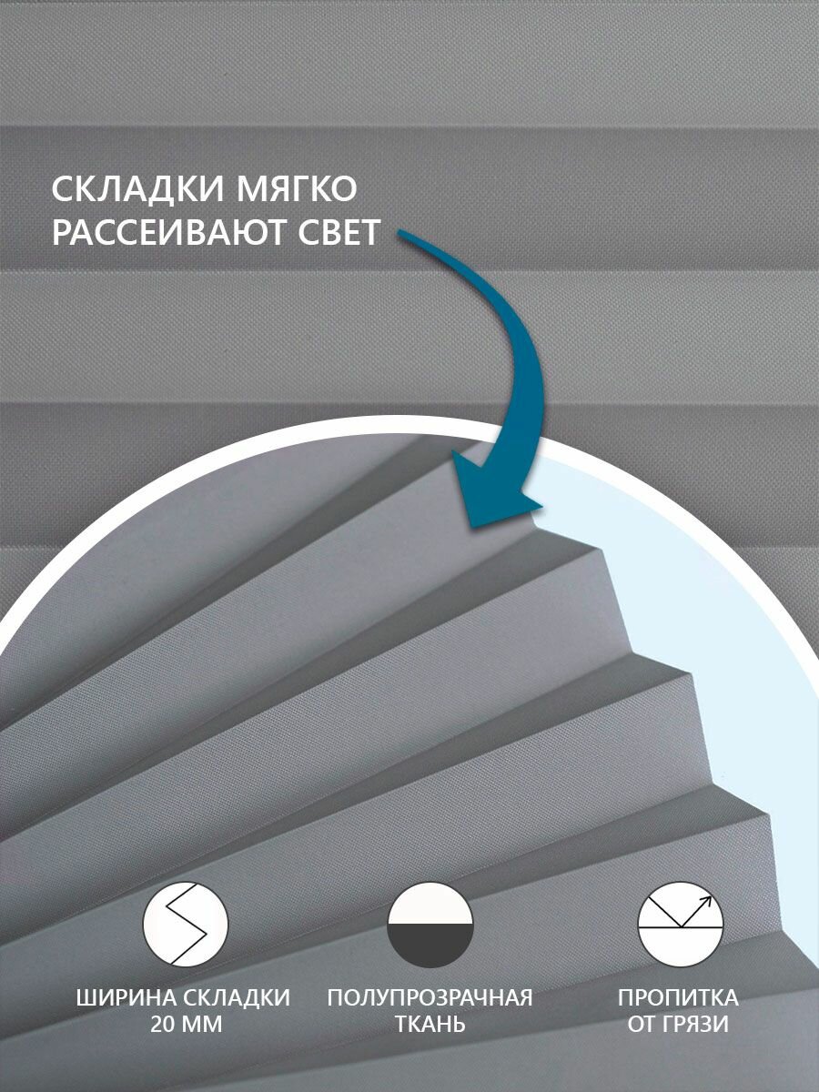 Жалюзи на окна плиссе горизонтальные 55х160 см, серый, Compact