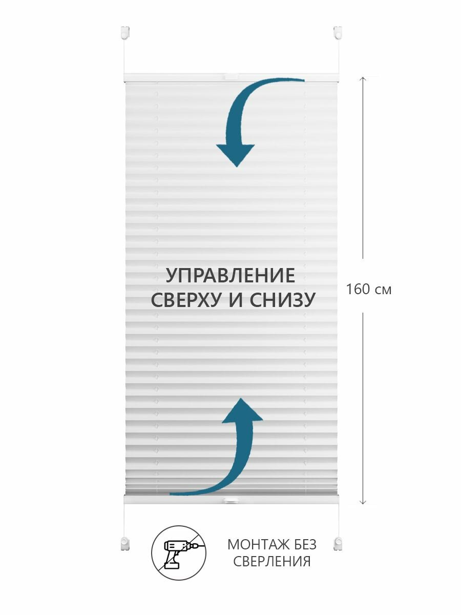 Жалюзи на окна плиссе горизонтальные 90х160 см, белый, Compact