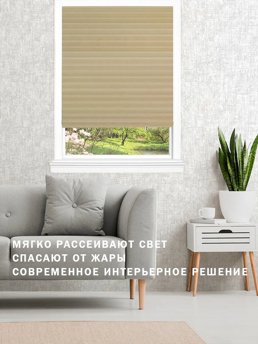 Жалюзи плиссе самоклеящиеся на окна, без сверления, ширина 90см, бежевые, 1 шт