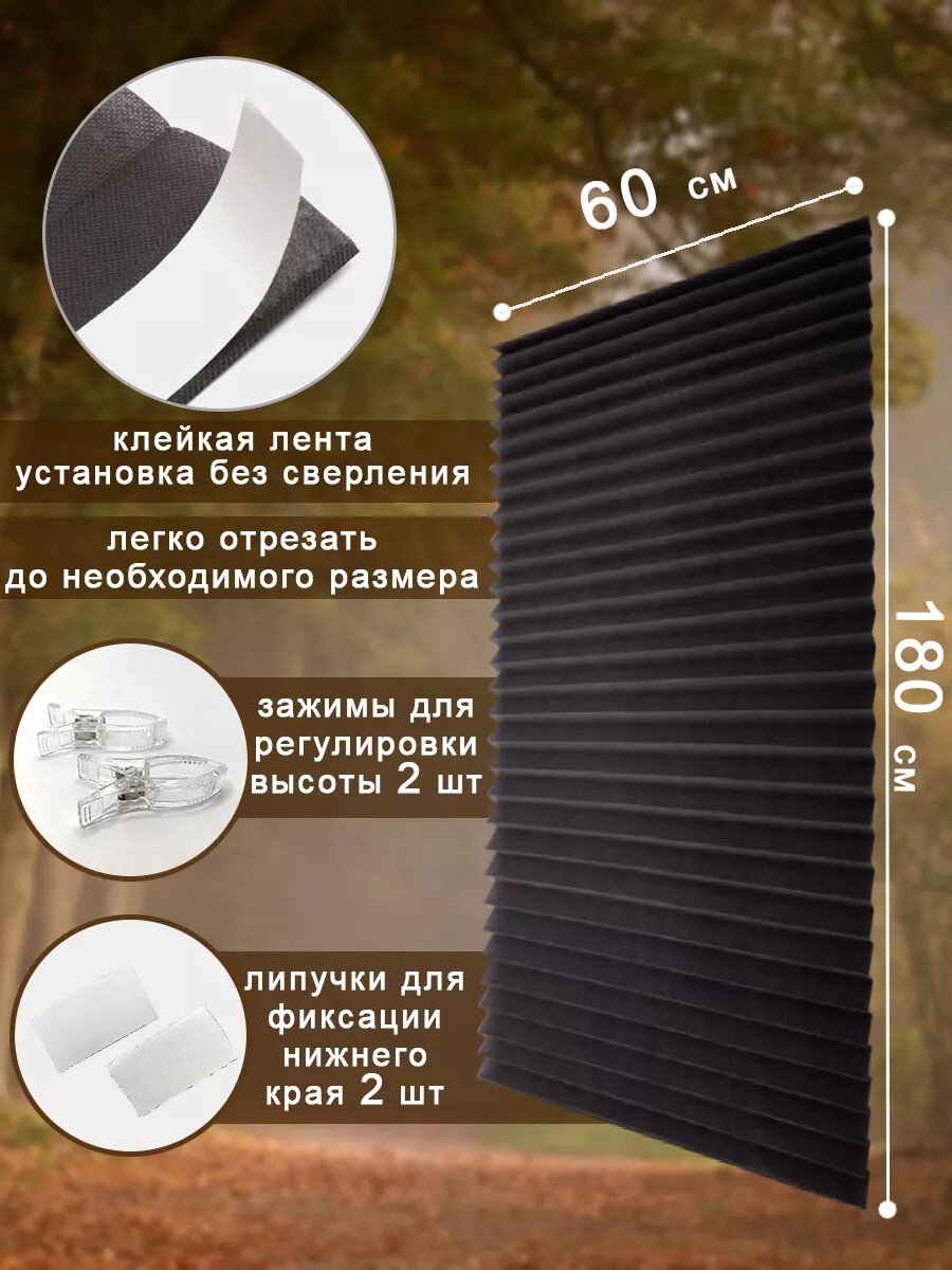 Купить Жалюзи плиссе на окна самоклеящиеся на клейкой ленте, ширина 60 см, темно-серые, 1 шт.