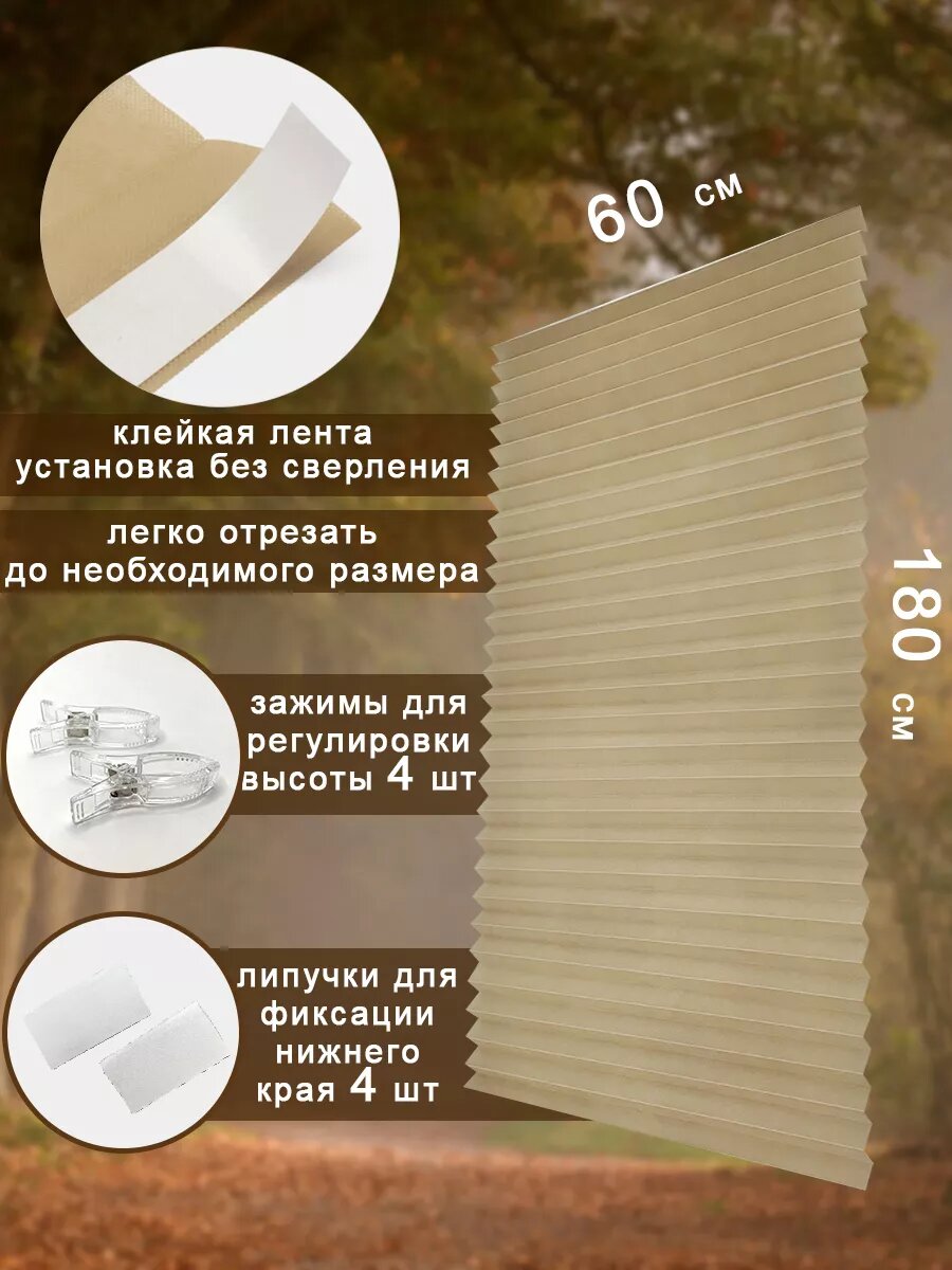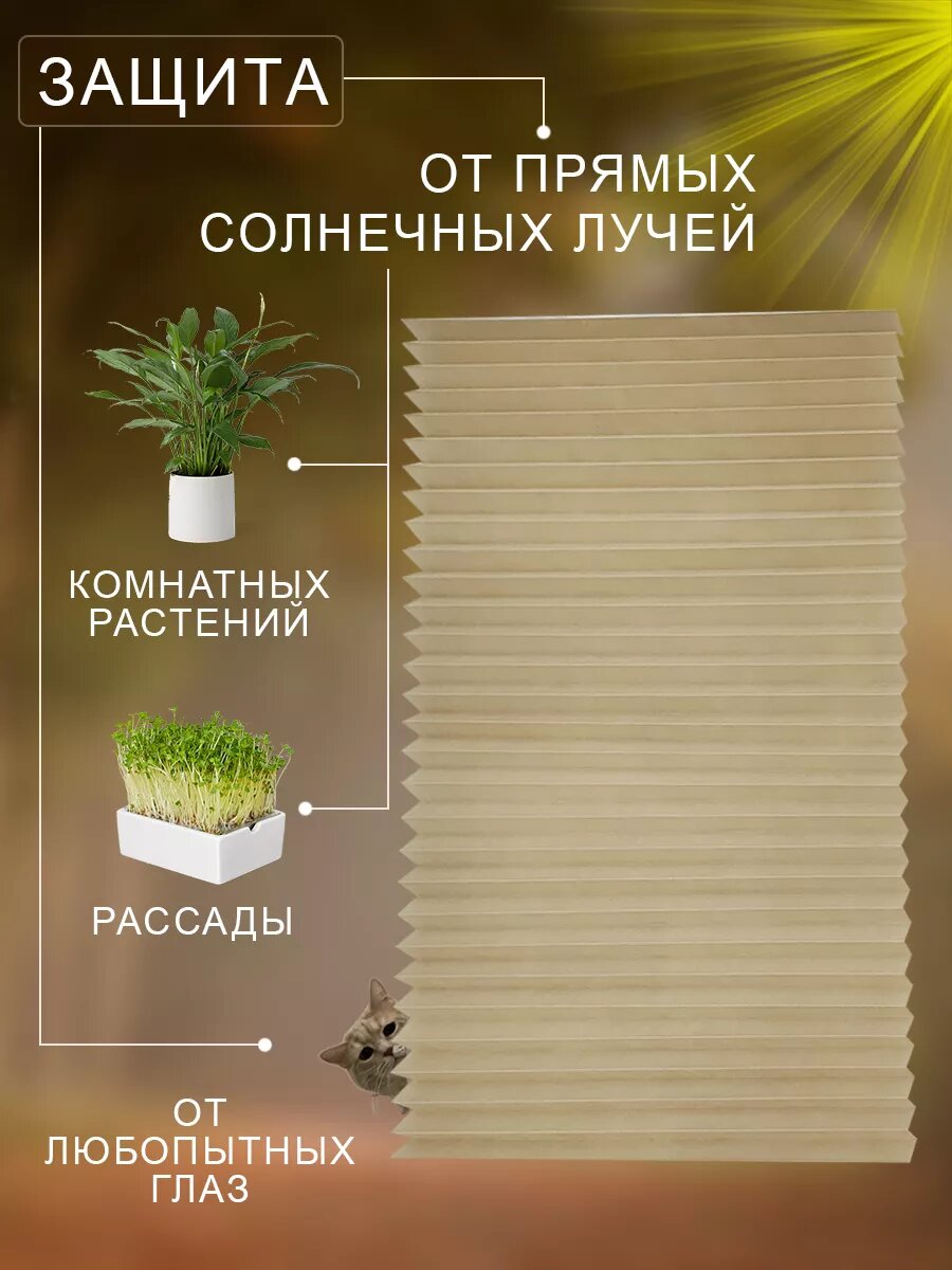 Жалюзи плиссе самоклеящиеся на окна, без сверления, ширина 90см, бежевые, 1 шт