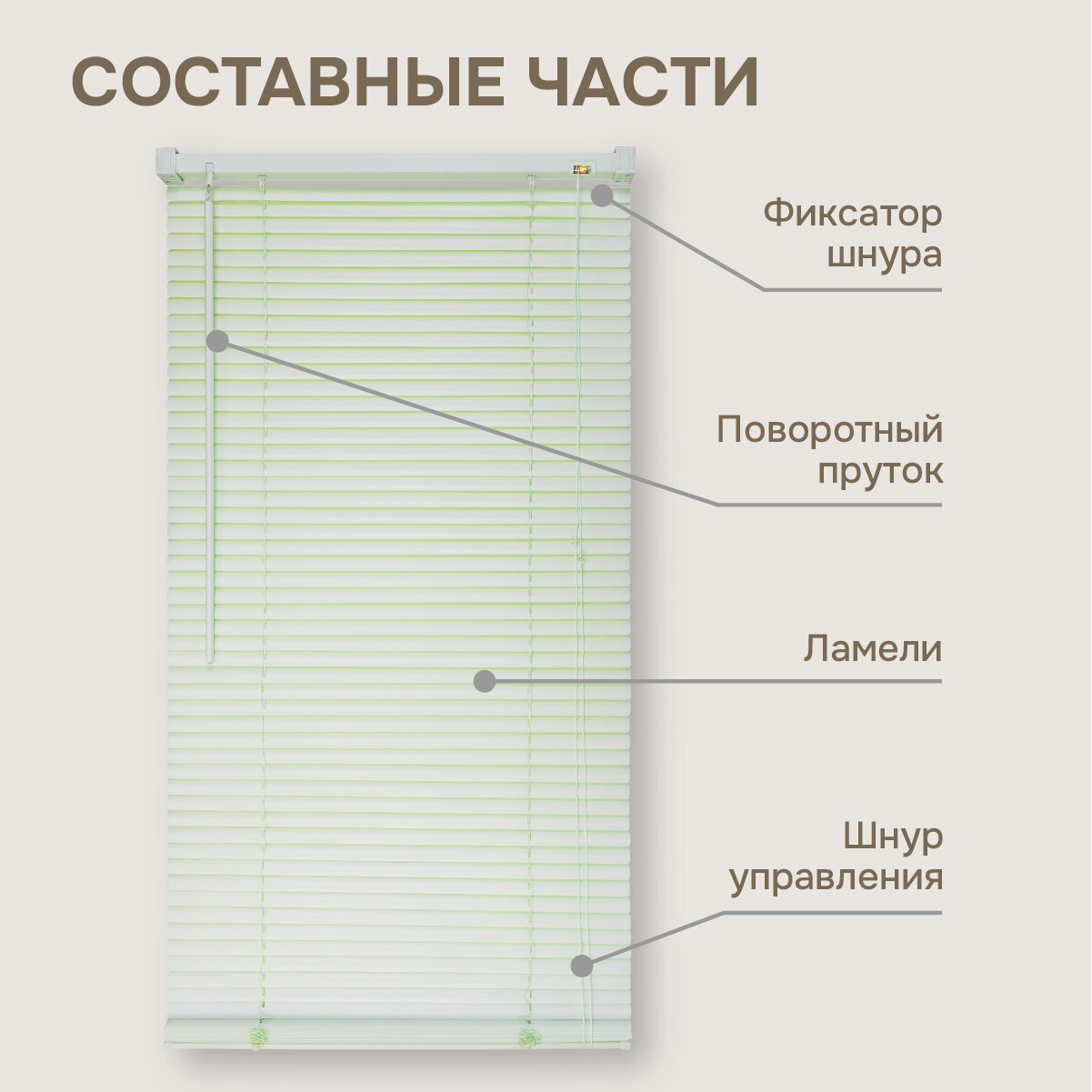 Жалюзи на окна 160х160 см, салатовые, жалюзи пластиковые горизонтальные Эскар