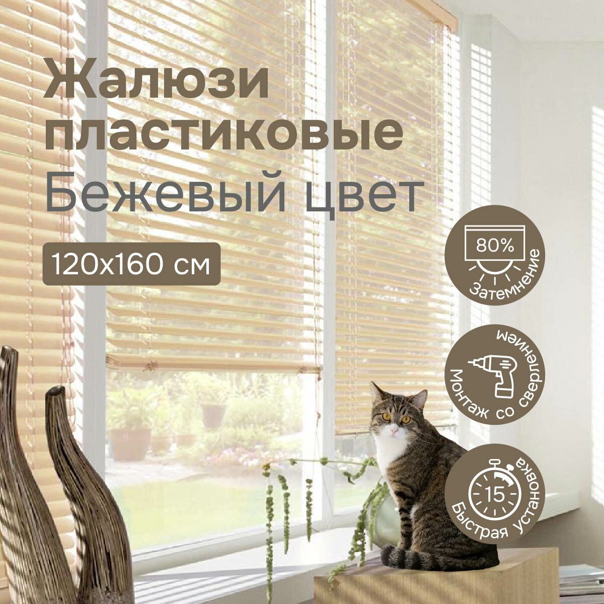 Жалюзи на окна 160х160 см, бежевые, жалюзи пластиковые горизонтальные Эскар