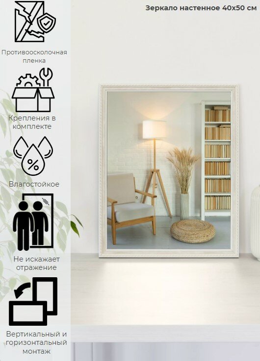 Купить Зеркало интерьерное в раме настенное ЗеркалоОК 40х50 см. Белый