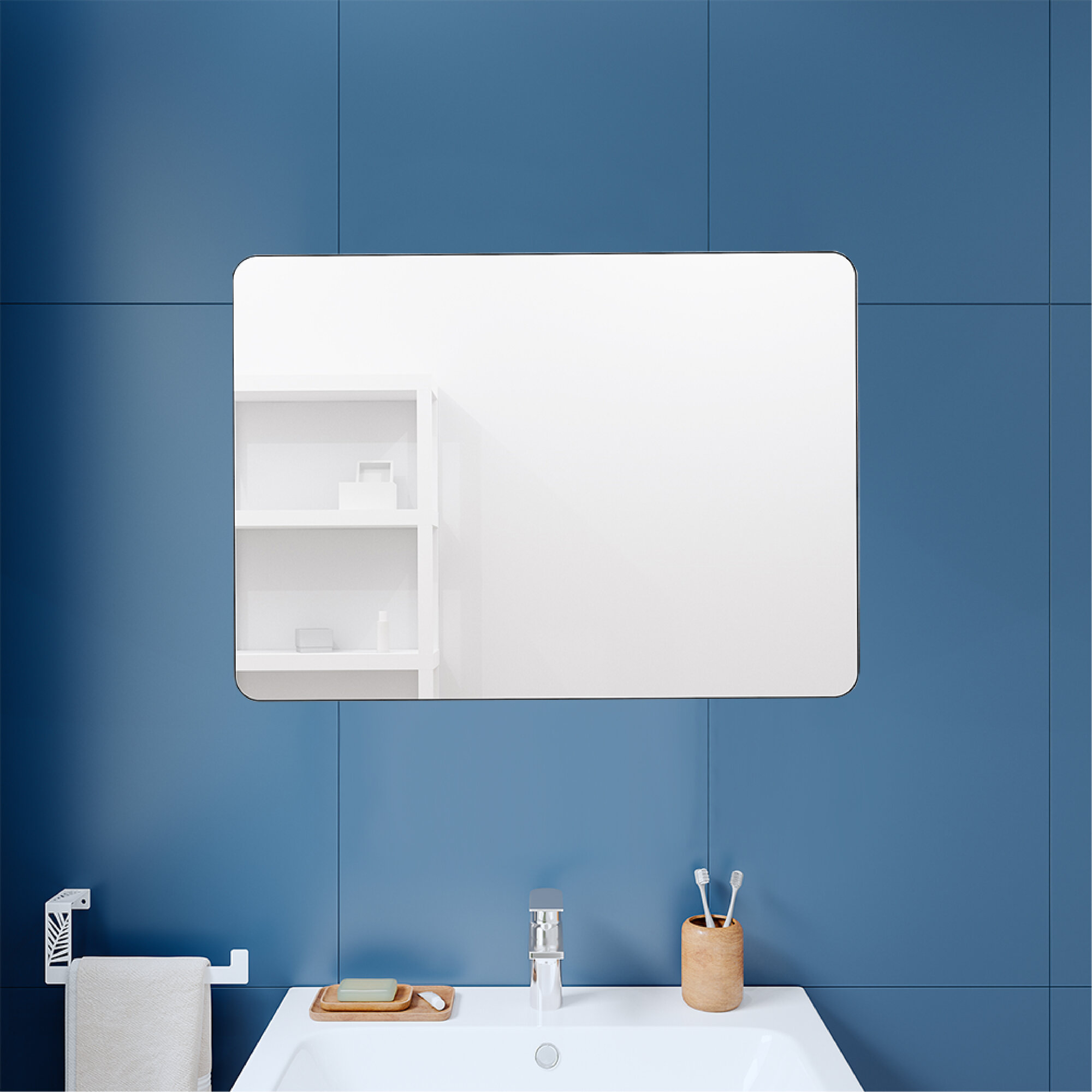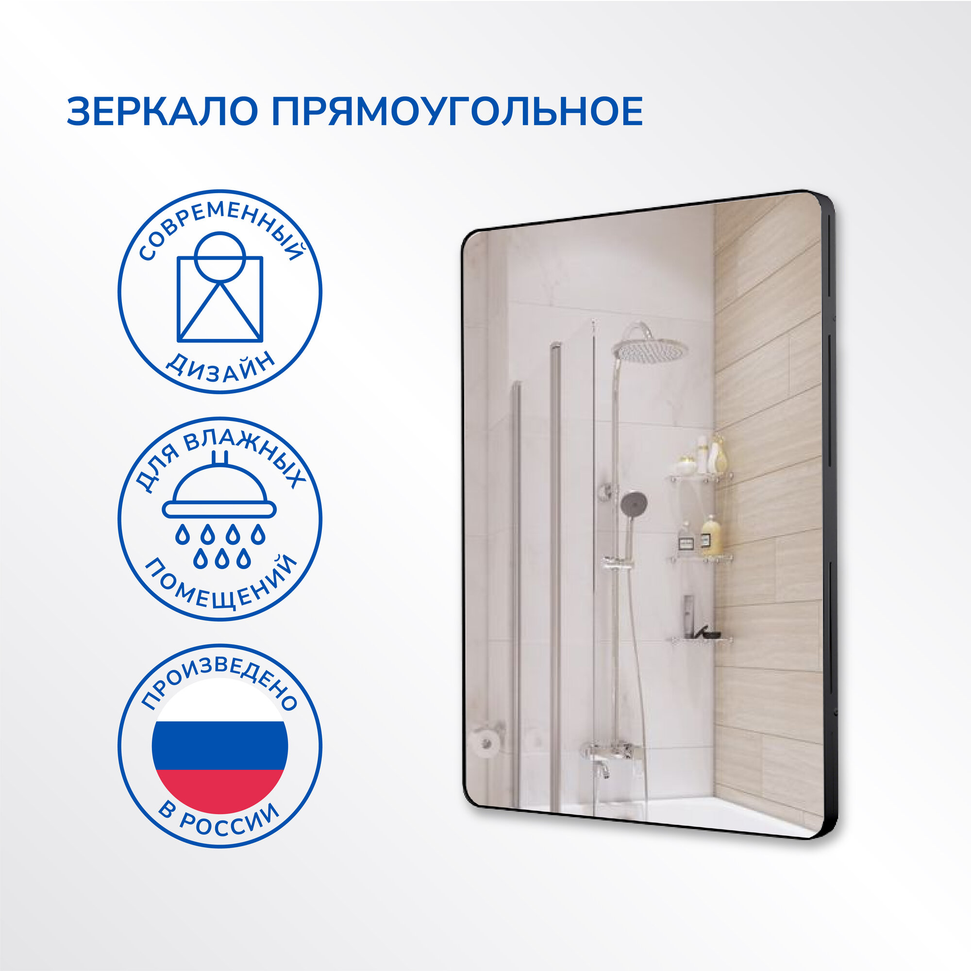 Зеркало настенное для ванной КерамаМане 70*100 см с холодной подсветкой 6000 К с сенсорной кнопкой