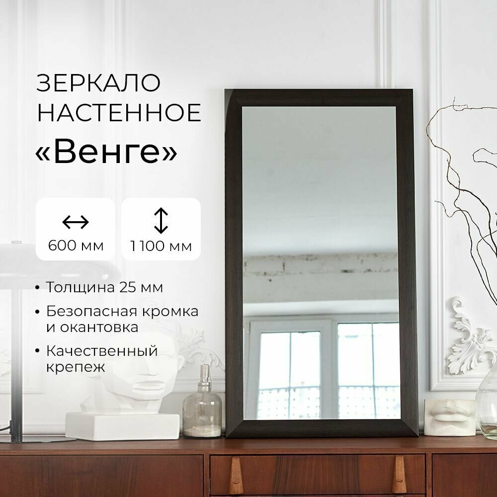 Ниже Вы можете прочитать отзывы на Зеркало настенное для прихожей прямоугольное интерьерное "Венге" 600х1100, ознакомится с подробными характеристиками, посмотреть интересные обзоры и фотографии на Зеркало настенное для прихожей прямоугольное интерьерное "Венге" 600х1100.