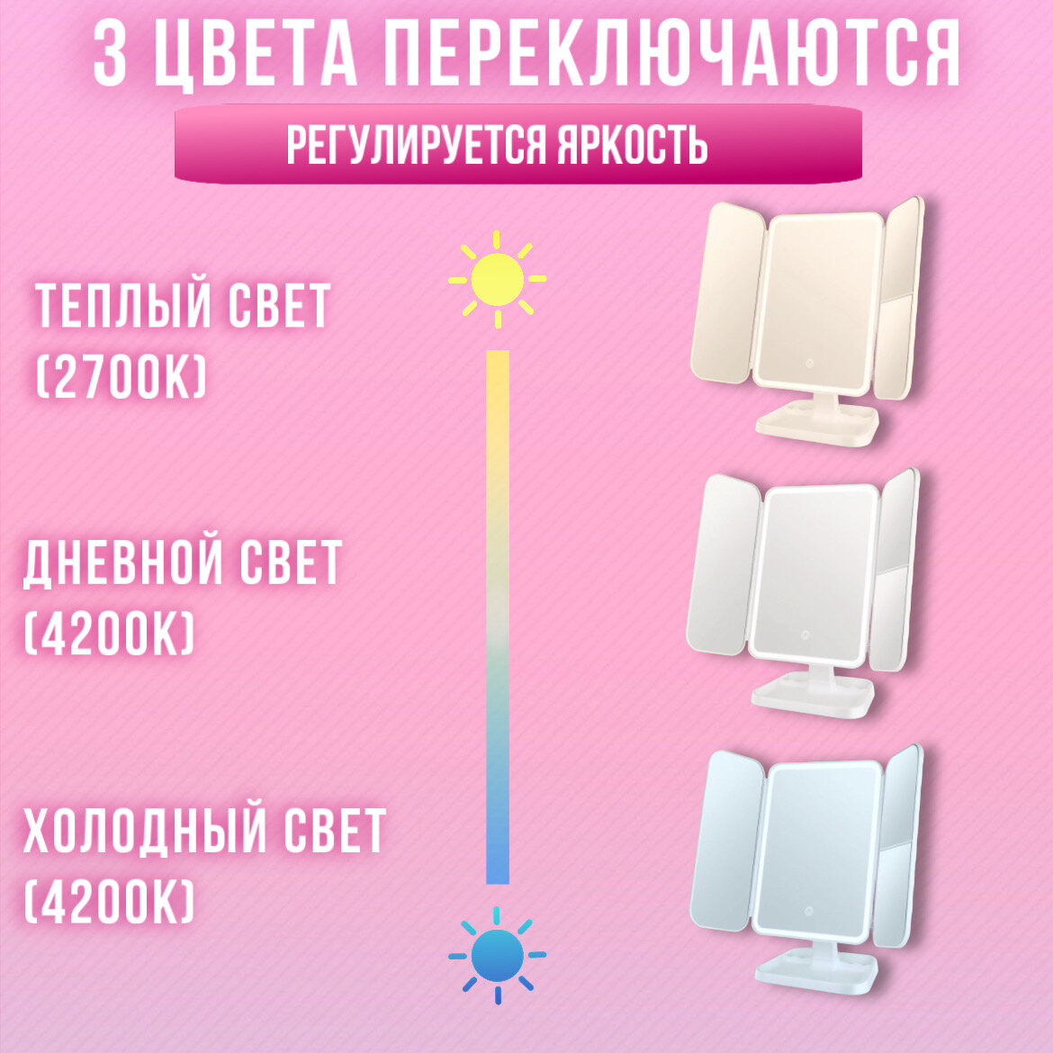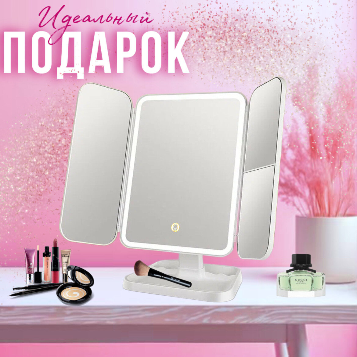 Ниже Вы можете прочитать отзывы на Зеркало настольное для макияжа, LED-подсветка, сенсорное управление, двухстворчатое, прямоугольное, ознакомится с подробными характеристиками, посмотреть интересные обзоры и фотографии на Зеркало настольное для макияжа, LED-подсветка, сенсорное управление, двухстворчатое, прямоугольное.