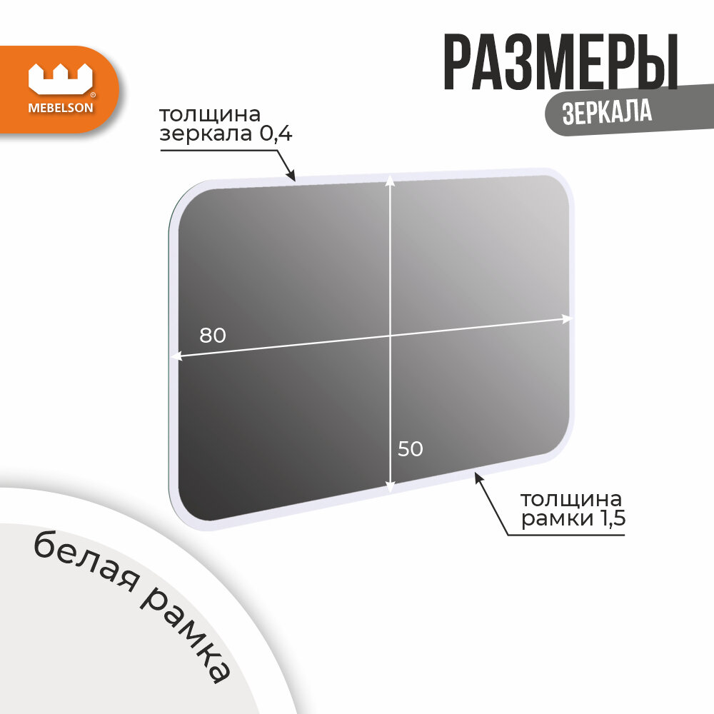 Прямоугольное зеркало "Фортуна 3", универсальное, цвет Белый, 80*50 см, Mebelson интересное: