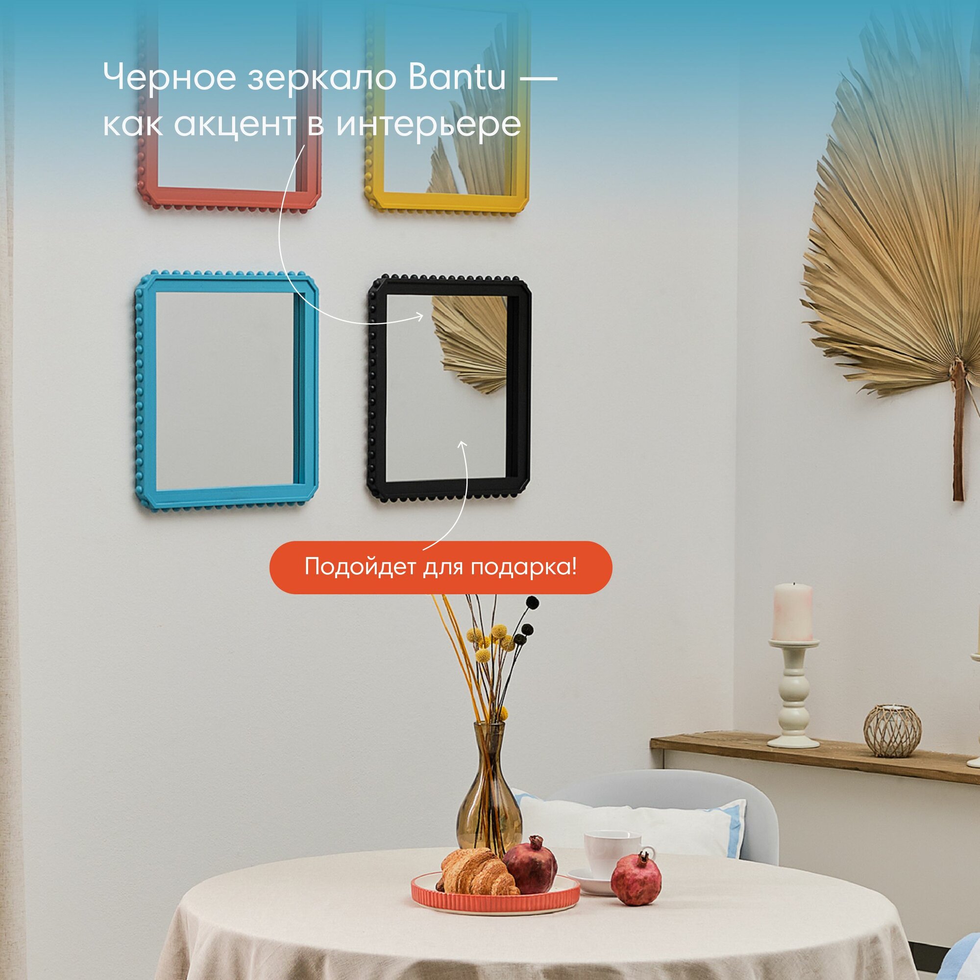 СохранитьЗеркало интерьерное настенное в раме квадратное для кухни спальни гостиной прихожей черное Bantu интересное: