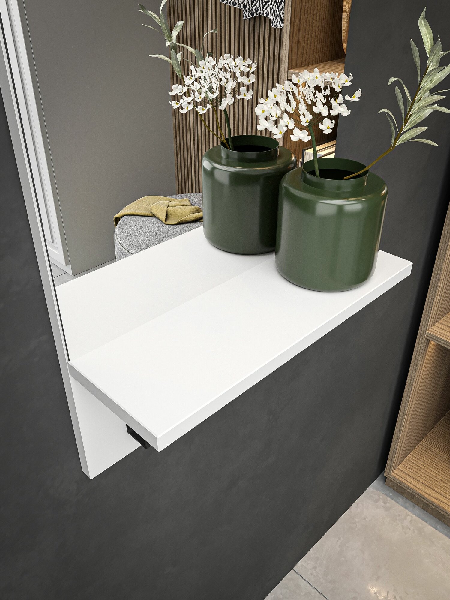Зеркало настенное, прямоугольное, с полочкой, белое, 50x114см
