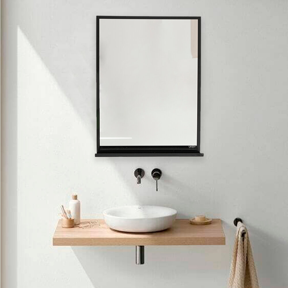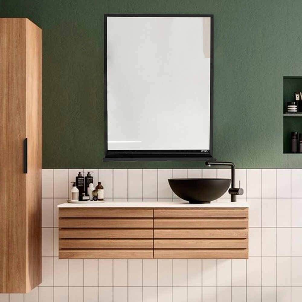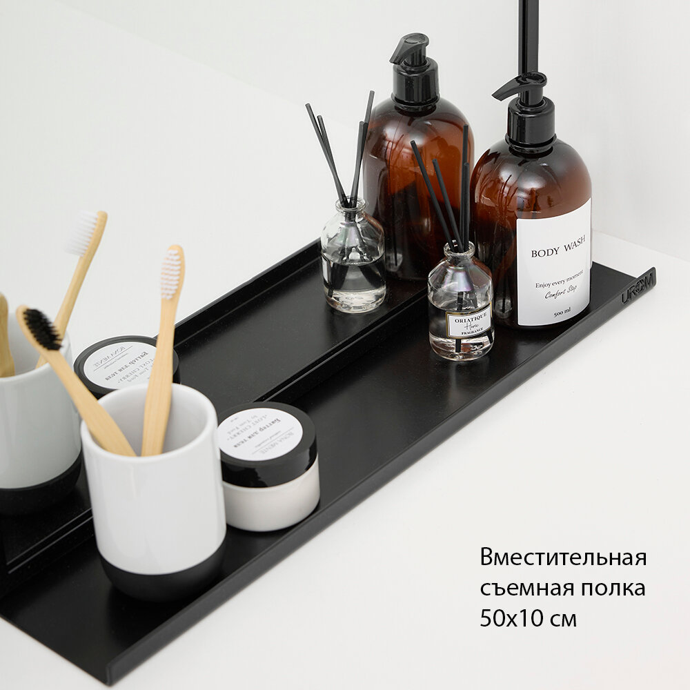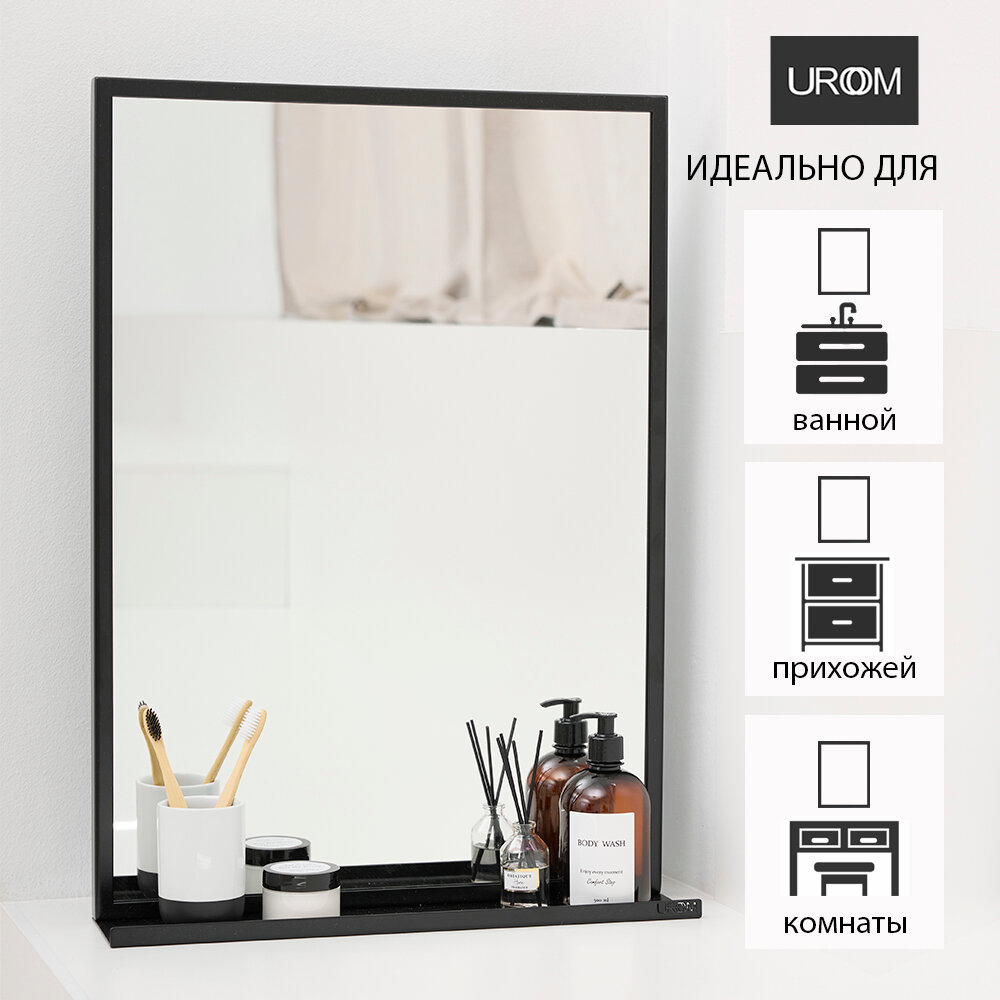 Зеркало в ванную 50х70 с полкой UROOM в металлической раме черное интересное: