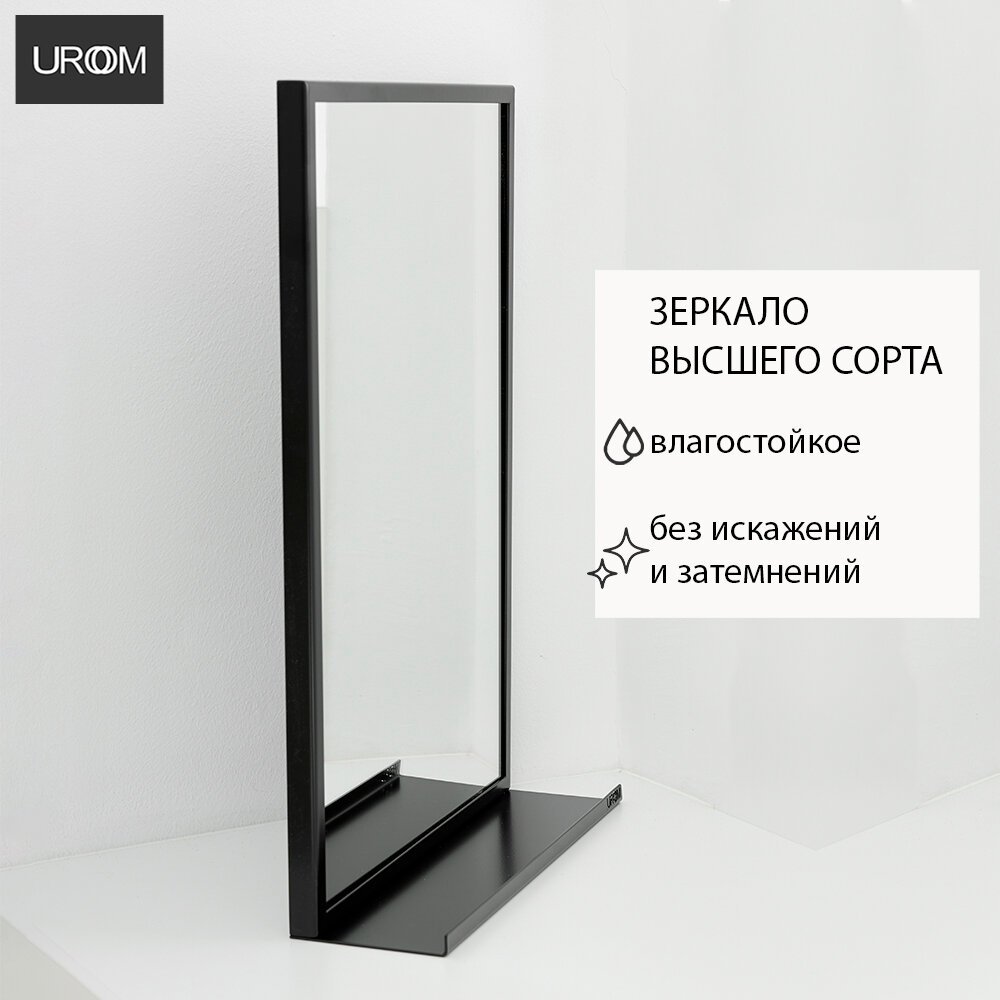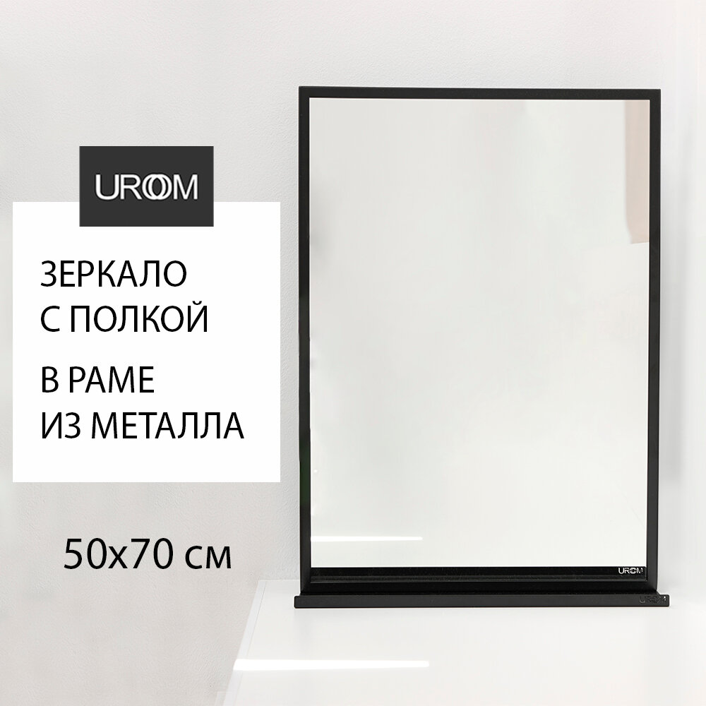 Купить Зеркало в ванную 50х70 с полкой UROOM в металлической раме черное