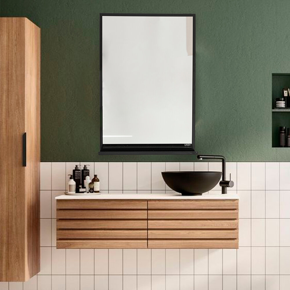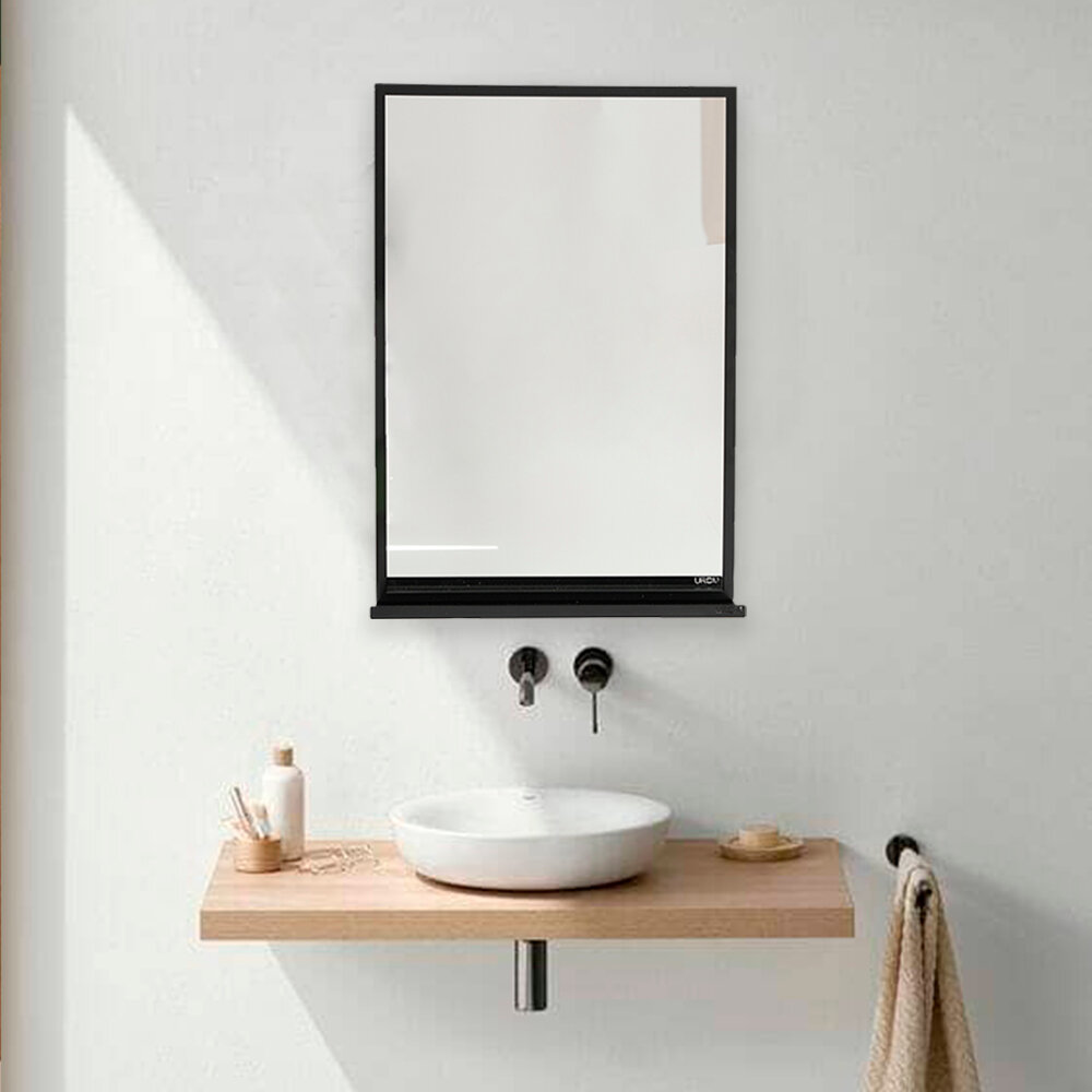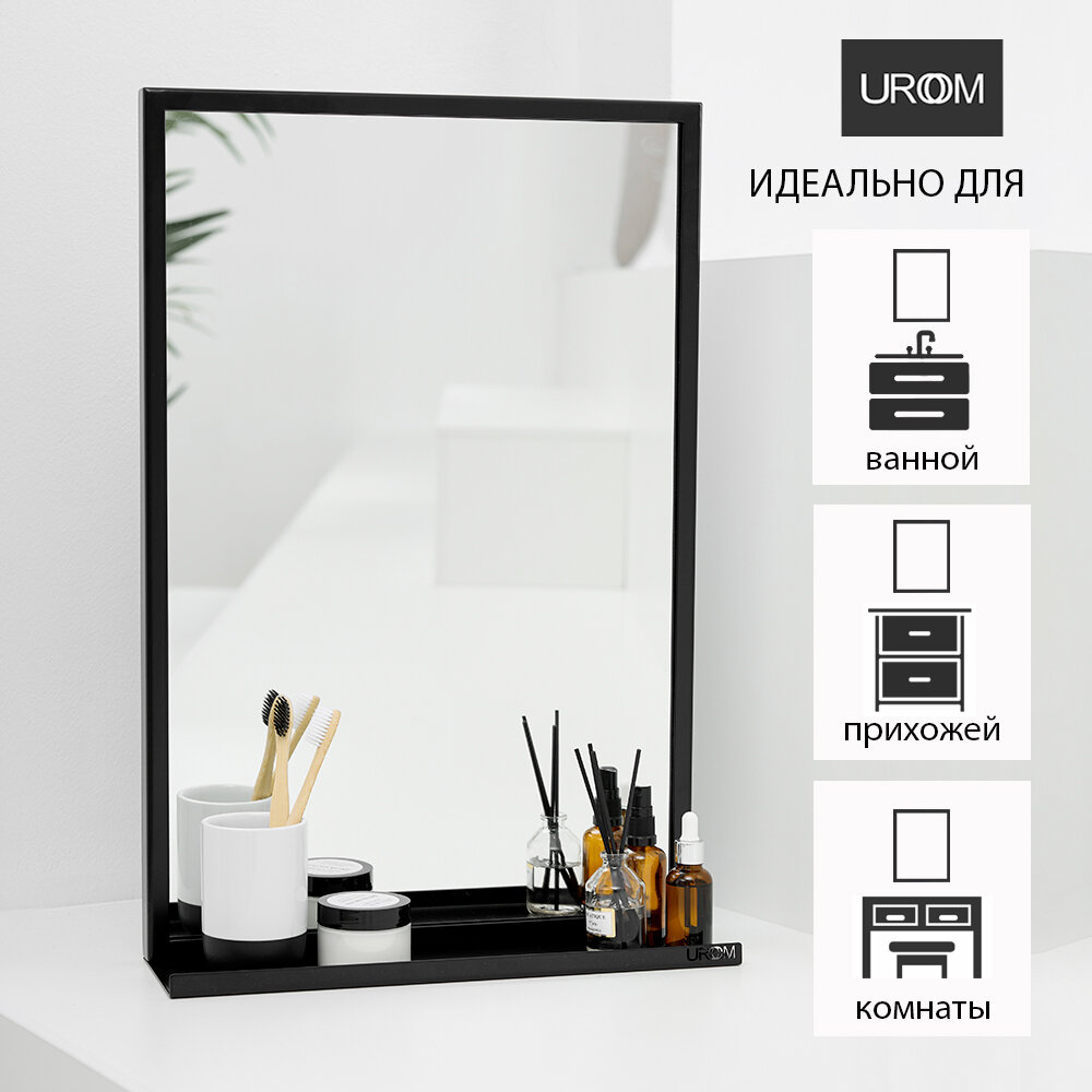 Зеркало в ванную 40х60 с полкой UROOM в металлической раме черное интересное: