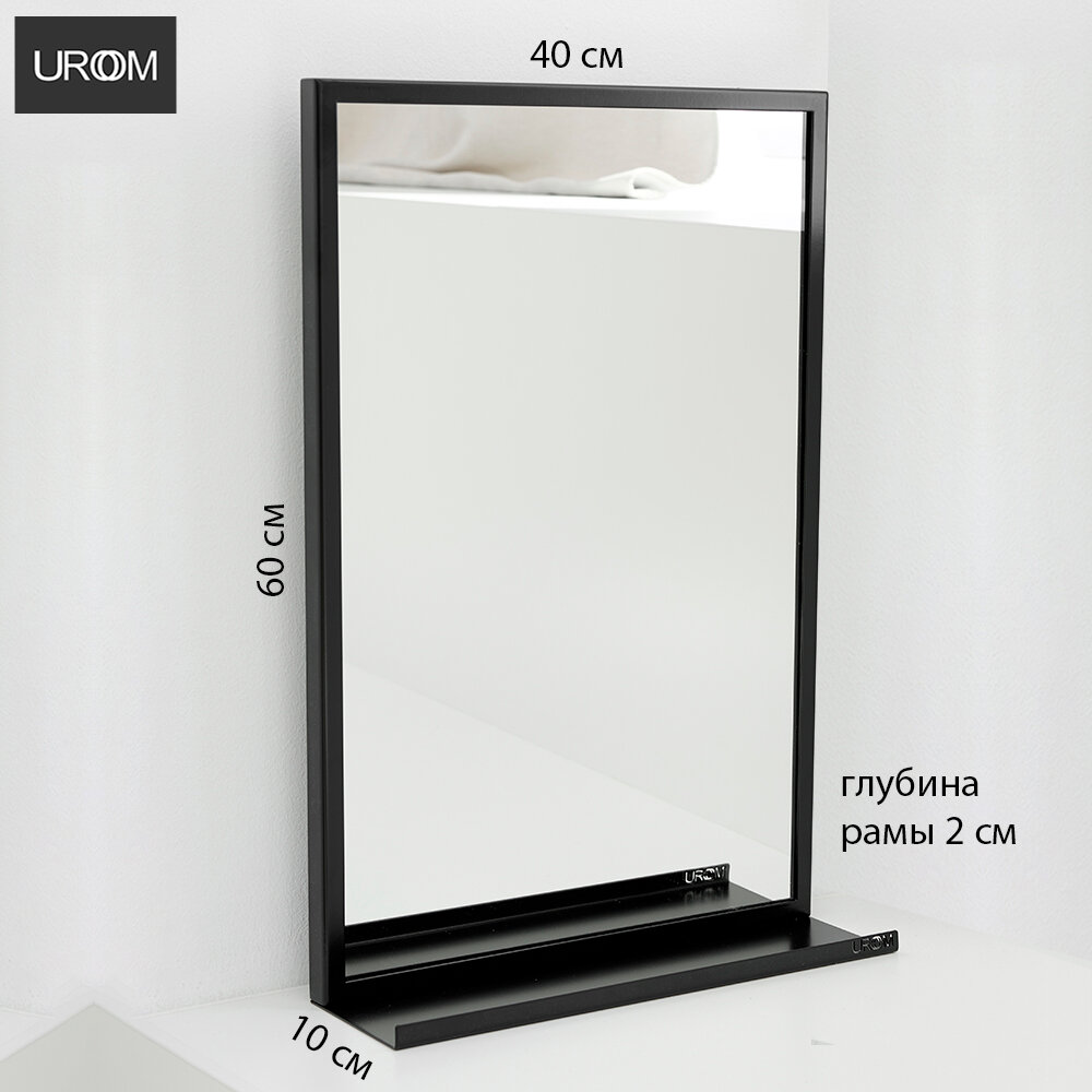 Купить Зеркало в ванную 40х60 с полкой UROOM в металлической раме черное