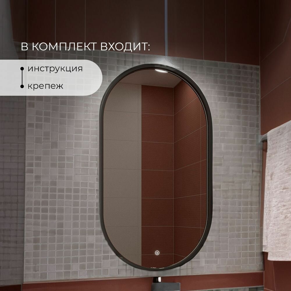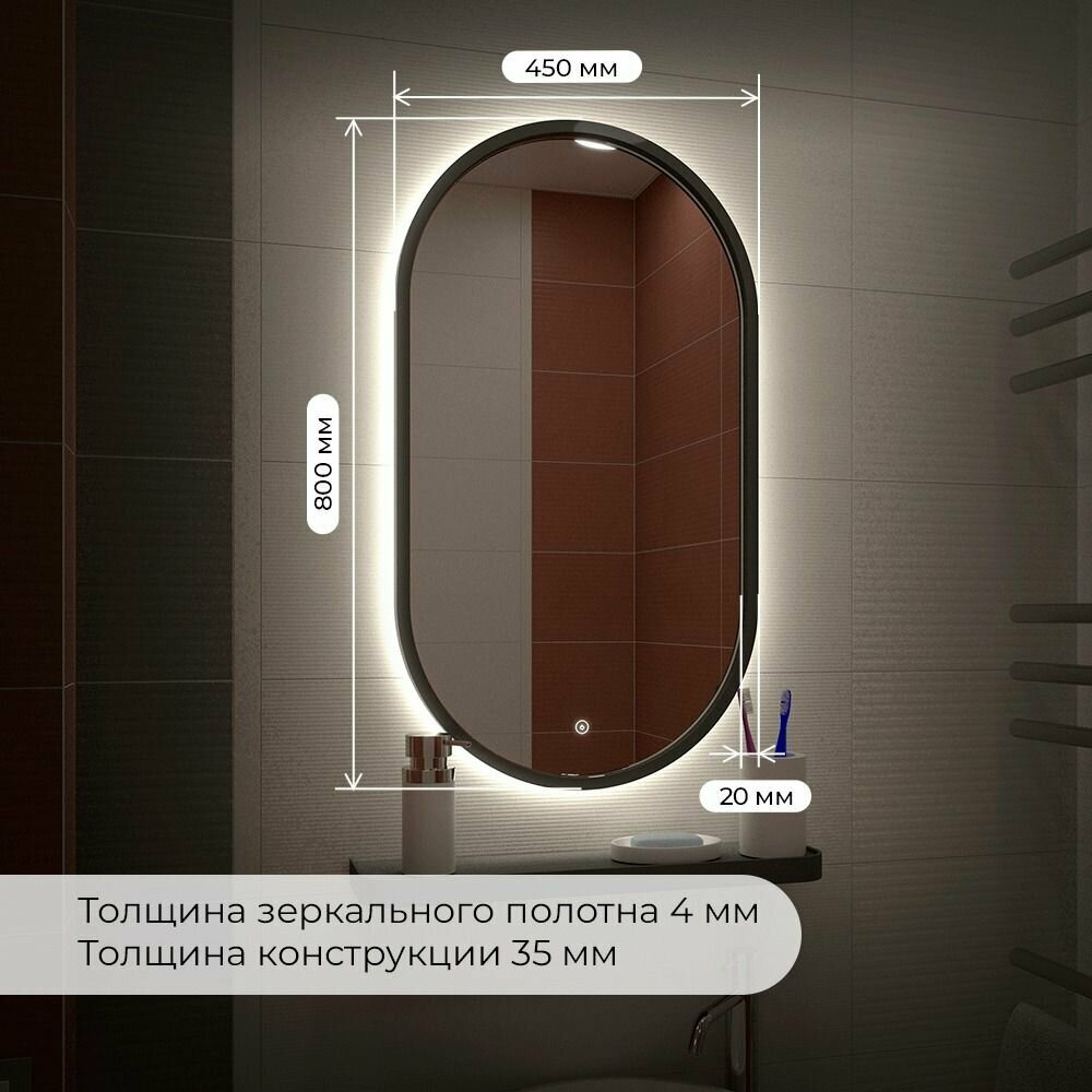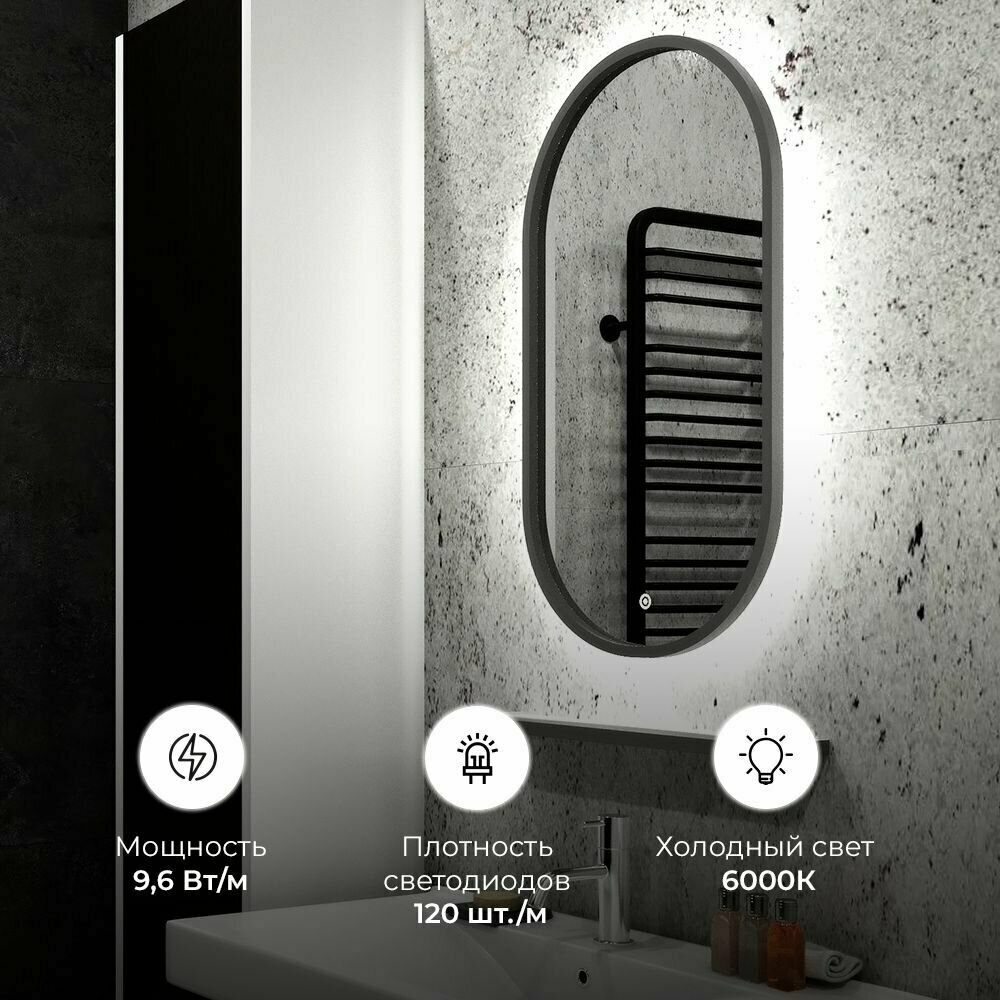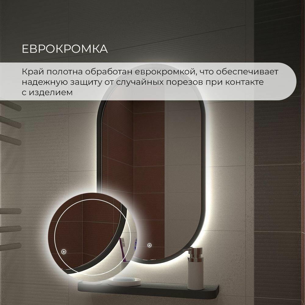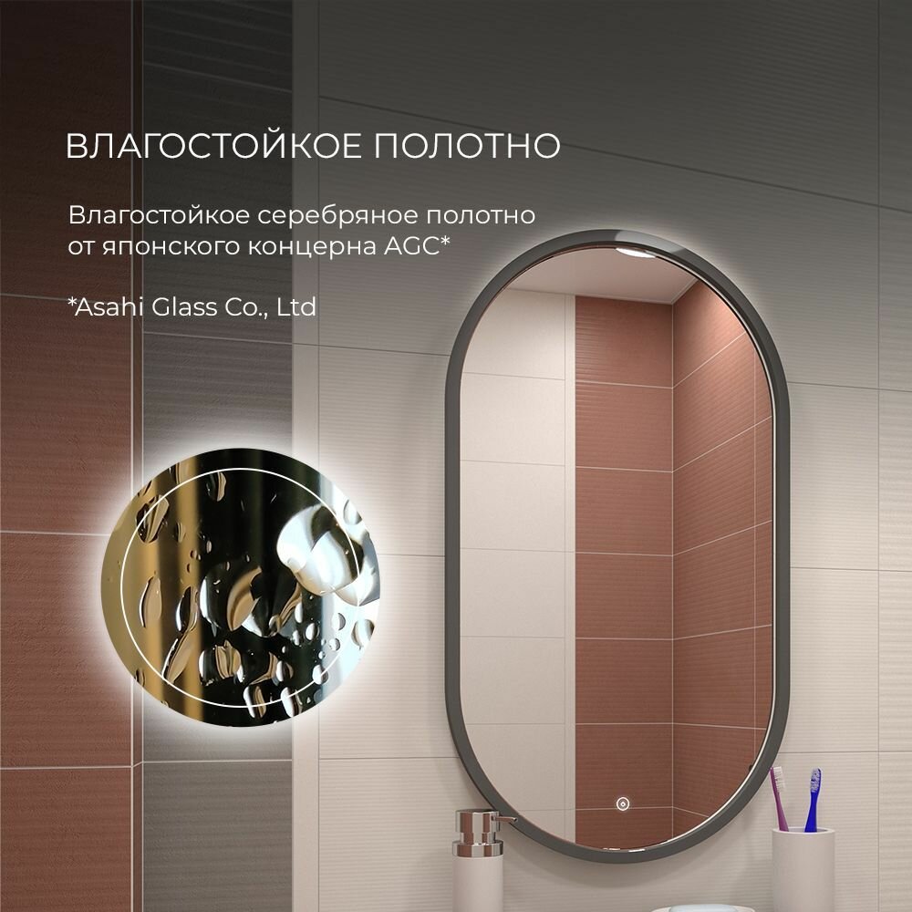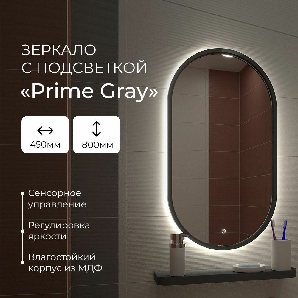Зеркало с подсветкой в ванную комнату настенное сенсорное в МДФ раме "Prime Gray Led" 45*80 см (без полки) интересное: