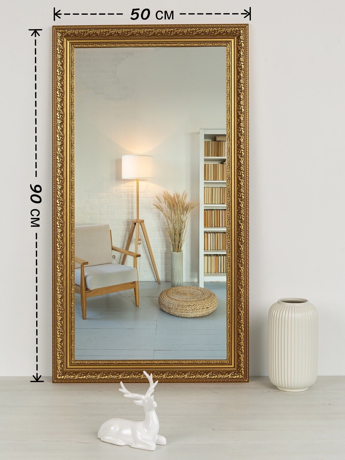 Зеркало настенное, интерьерное "ЗеркалоОК" в золотой раме 50х90 интересное: