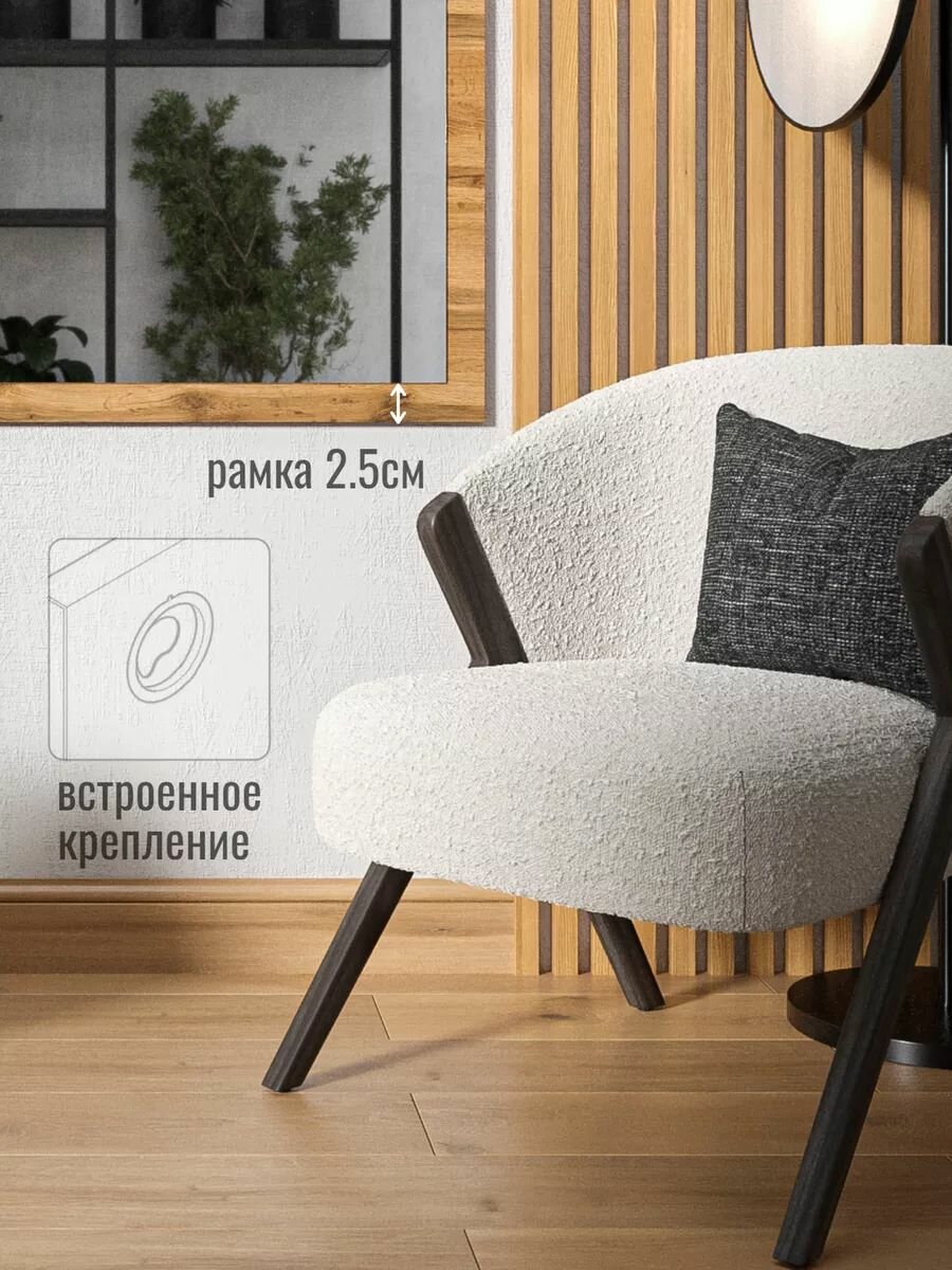 Зеркало MебельSтиль, прямоугольное, ЛДСП, настенная, дуб вотан