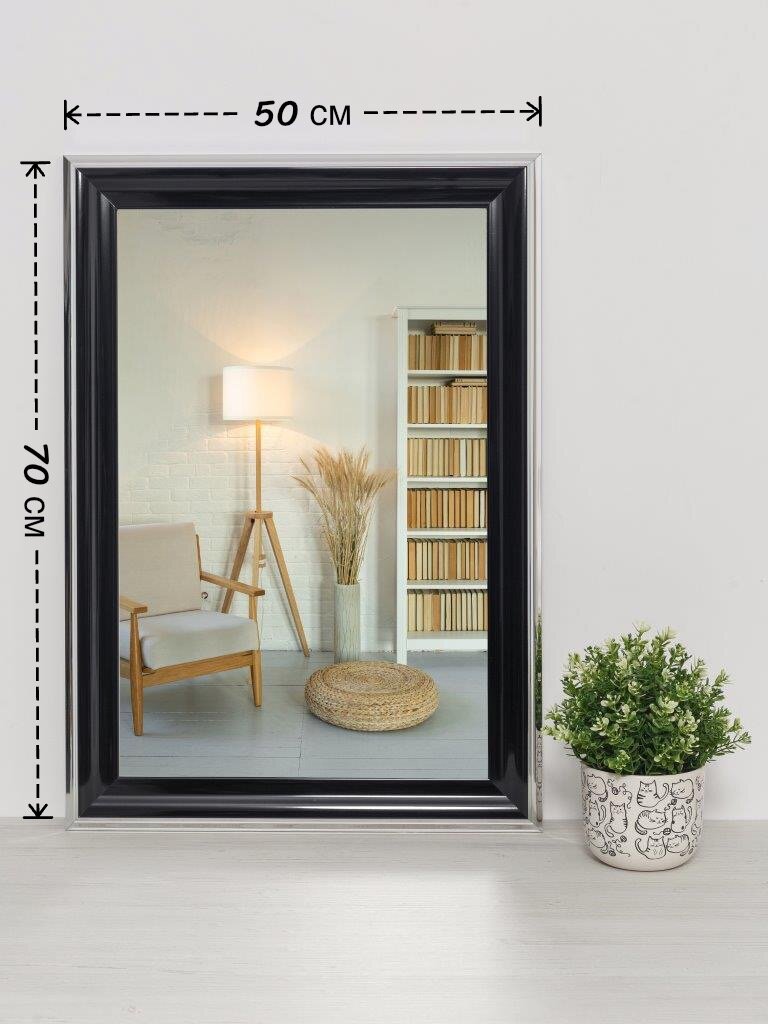 Купить Зеркало интерьерное в раме настенное ЗеркалоОК 50х70 см. Черный