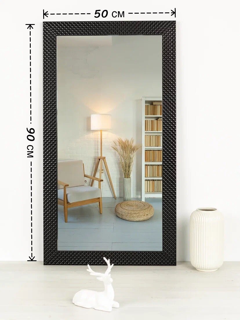 Зеркало "Шанель", 50 х 90, с рамой, для ванной комнаты и интерьера, прямоугольное интересное: